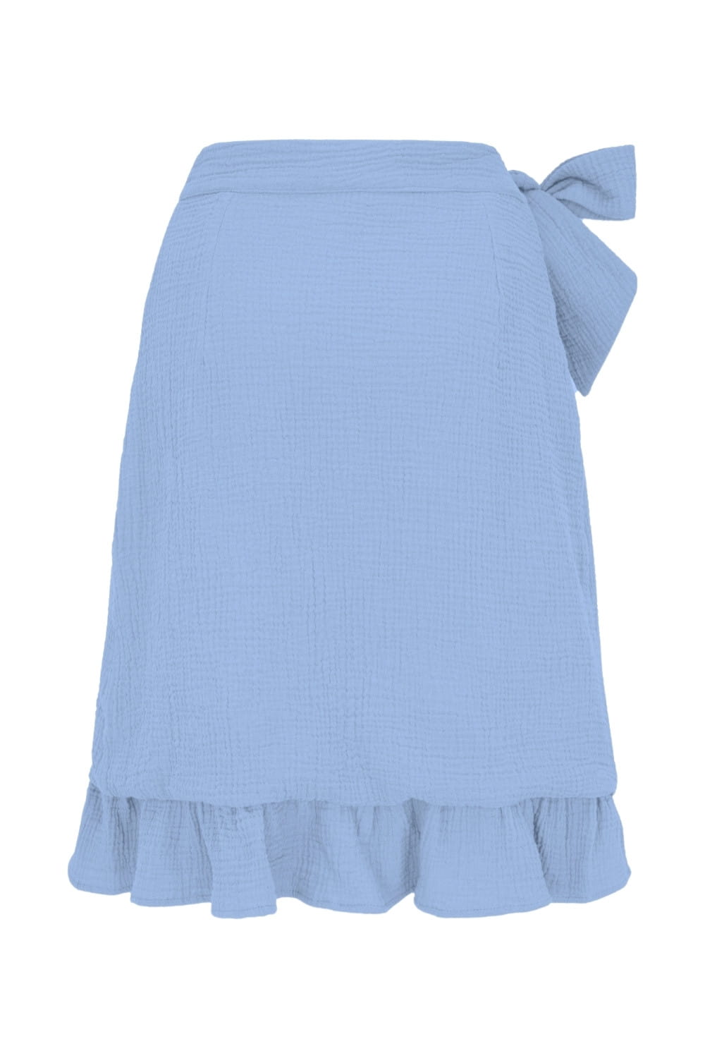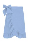 ROSALIA - Placid Blue - kopertowa spódnica do kolan z falbaną i wiązaniem w talii