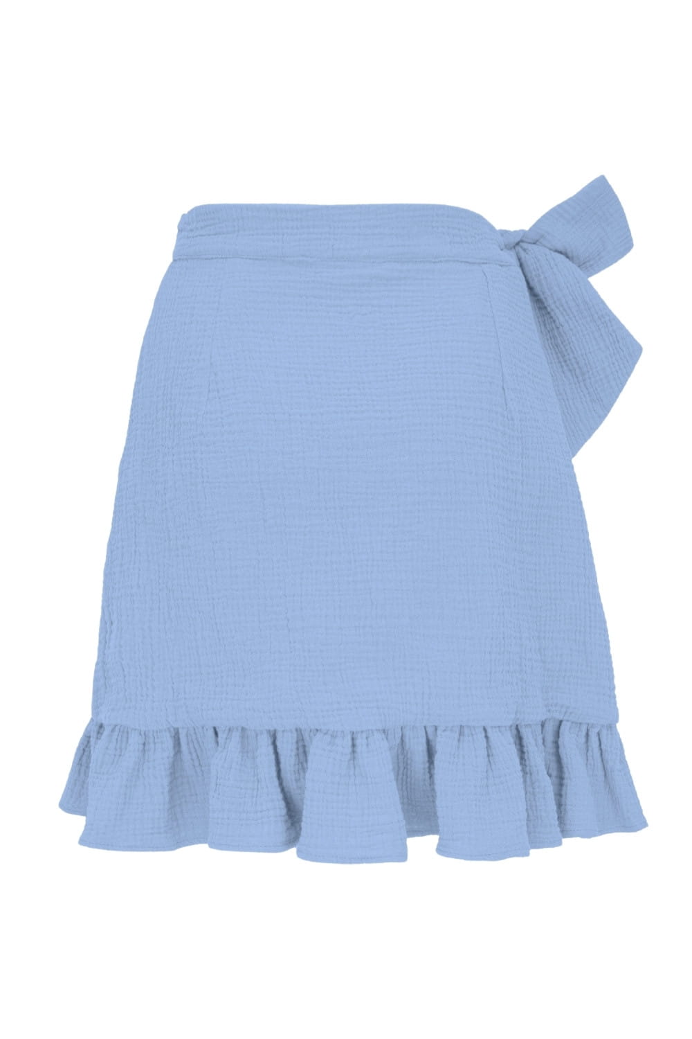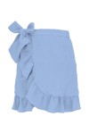 ROSALIA - Placid Blue - kopertowa spódnica przed kolano z falbaną i wiązaniem w talii