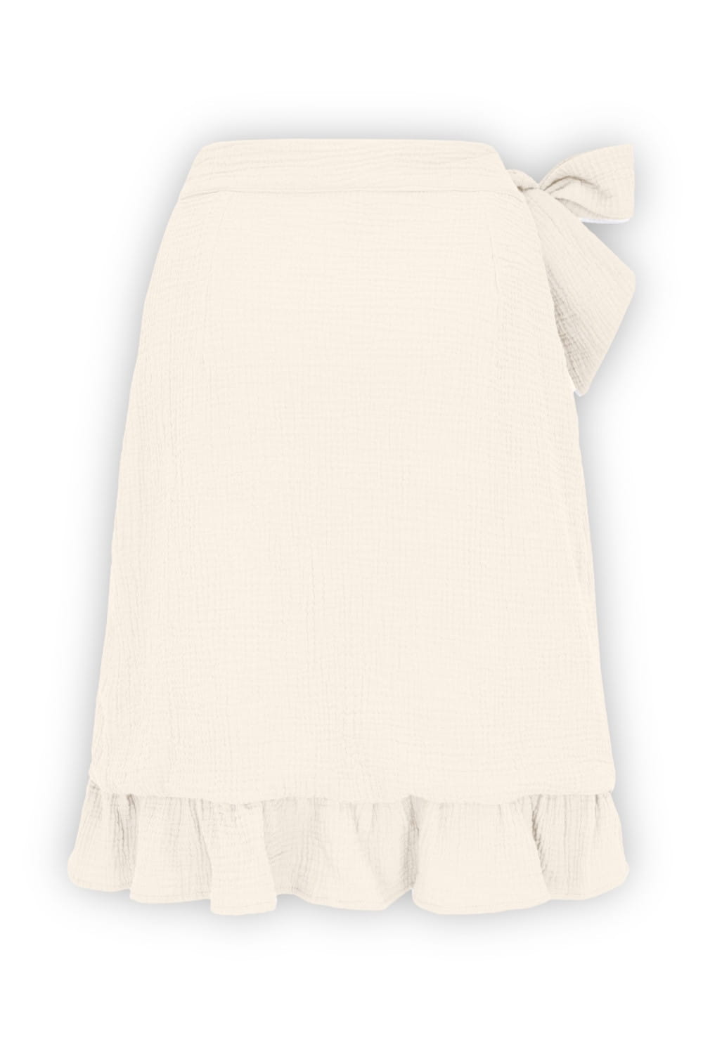 ROSALIA - Pristine - kopertowa spódnica do kolan z falbaną i wiązaniem w talii