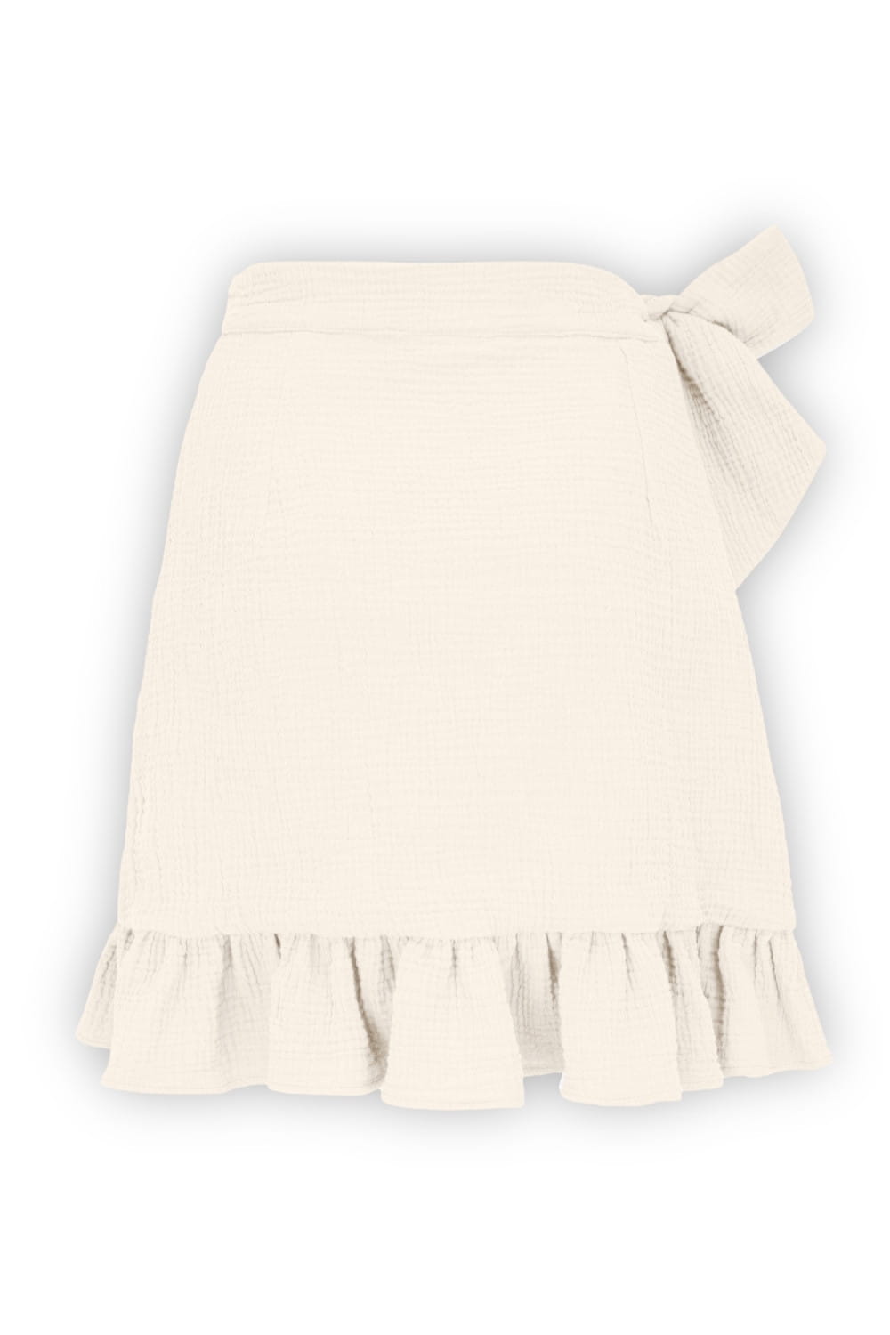 ROSALIA - Pristine - kopertowa spódnica przed kolano z falbaną i wiązaniem w talii