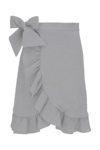Romantyczna kopertowa spódnica z falbaną o długości do kolan - 60 cm. Ma bawełnianą podszewkę o wykończeniu soft touch, wszytą tak, by się nie podwijała. W pasie ma ozdobne wiązanie oraz ukryte wewnątrz praktyczne zapięcie. To spódnica idealna na każdą okazję, na której chcesz zrobić efekt WOW!