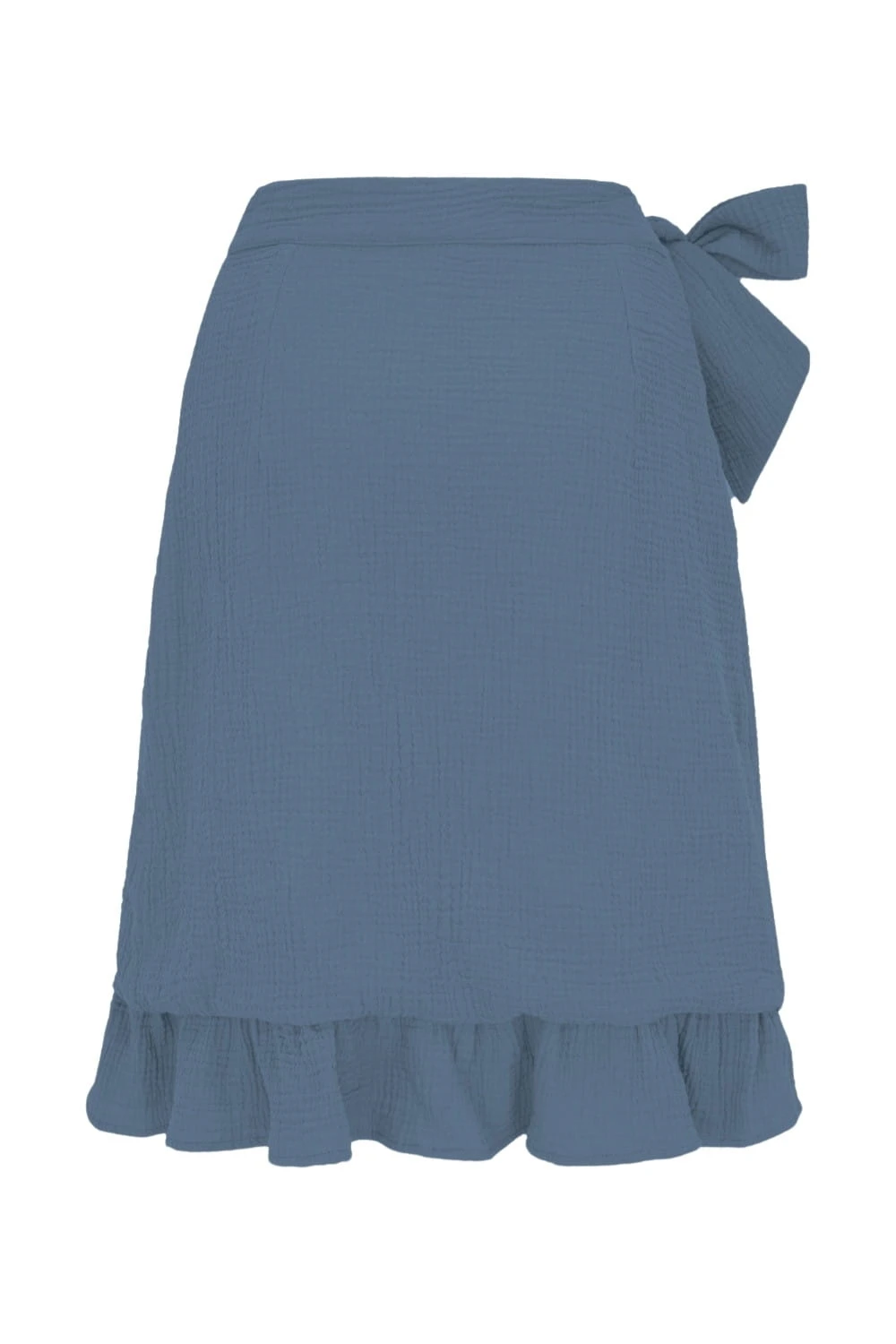 Rosalia – kopertowa spódnica z falbaną i wiązaniem w talii