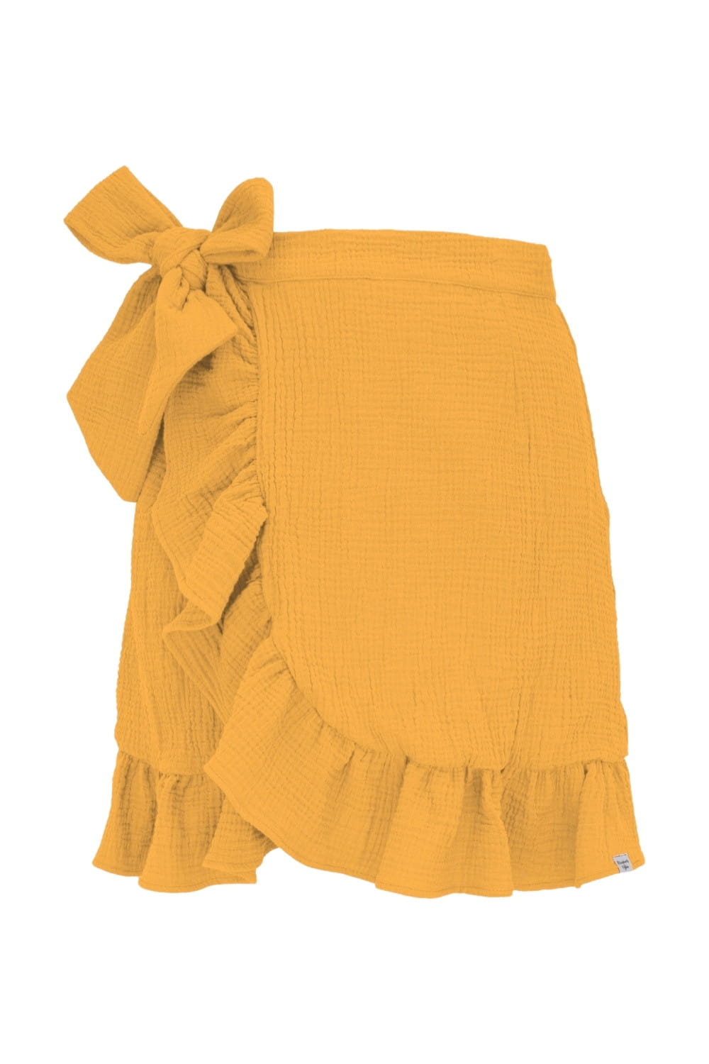 ROSALIA - Sunflower - kopertowa spódnica przed kolano z falbaną i wiązaniem w talii