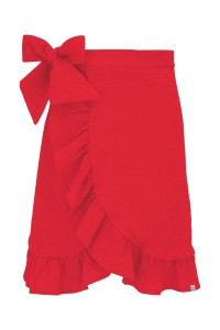 ROSALIA - Tomato - kopertowa spódnica do kolan z falbaną i wiązaniem w talii
