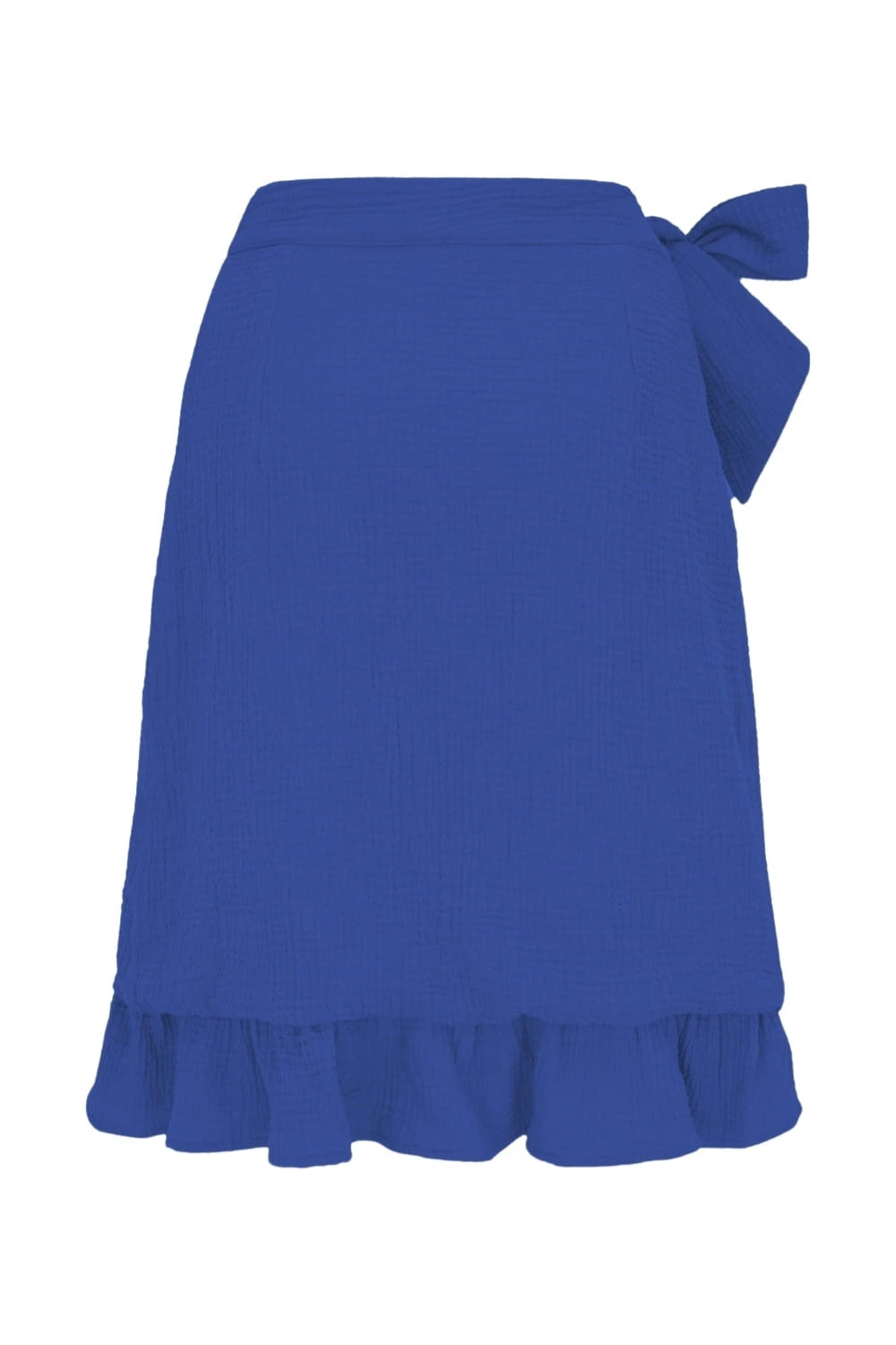 ROSALIA - Turkish Sea - kopertowa spódnica do kolan z falbaną i wiązaniem w talii