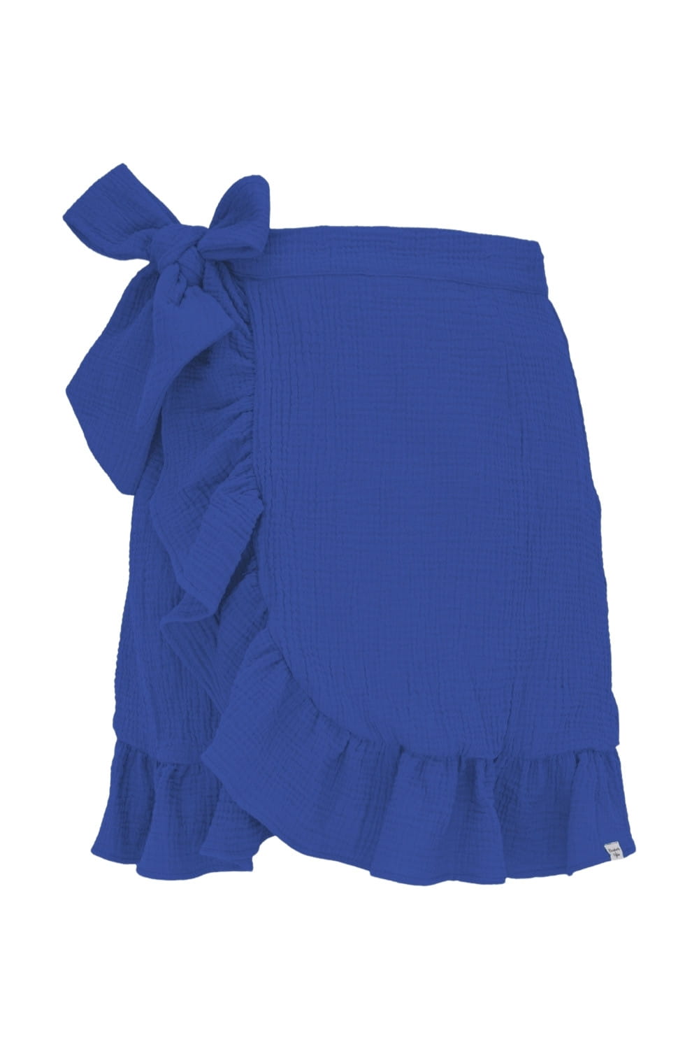 ROSALIA - Turkish Sea - kopertowa spódnica przed kolano z falbaną i wiązaniem w talii