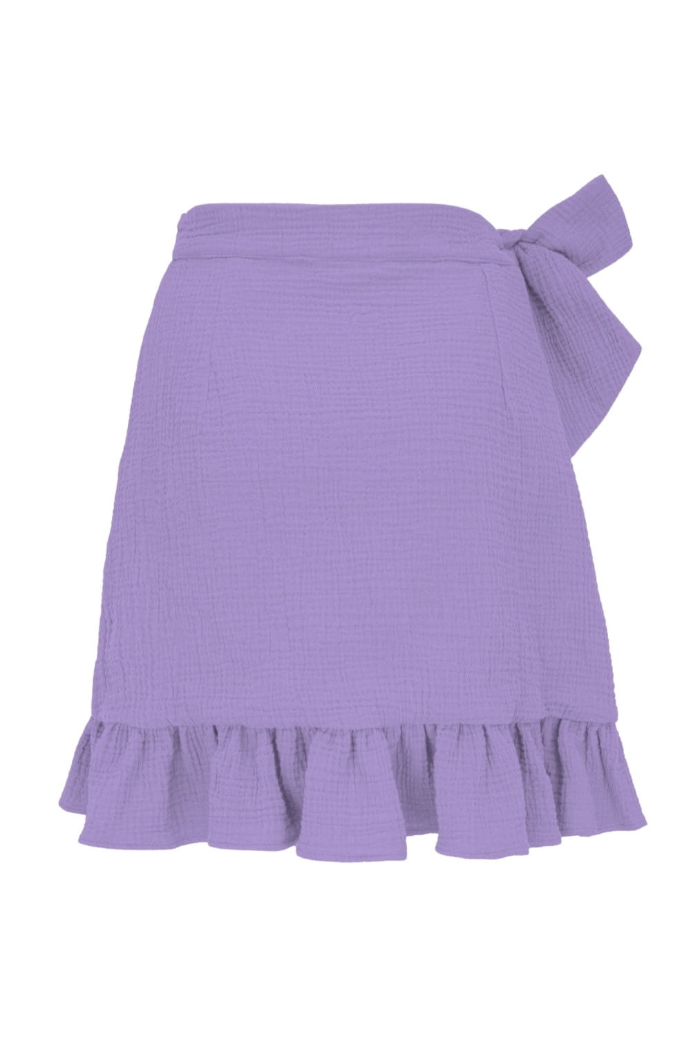 ROSALIA - Viola - kopertowa spódnica przed kolano z falbaną i wiązaniem w talii