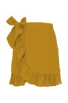 ROSALIA - Wood Thrush - kopertowa spódnica przed kolano z falbaną i wiązaniem w talii