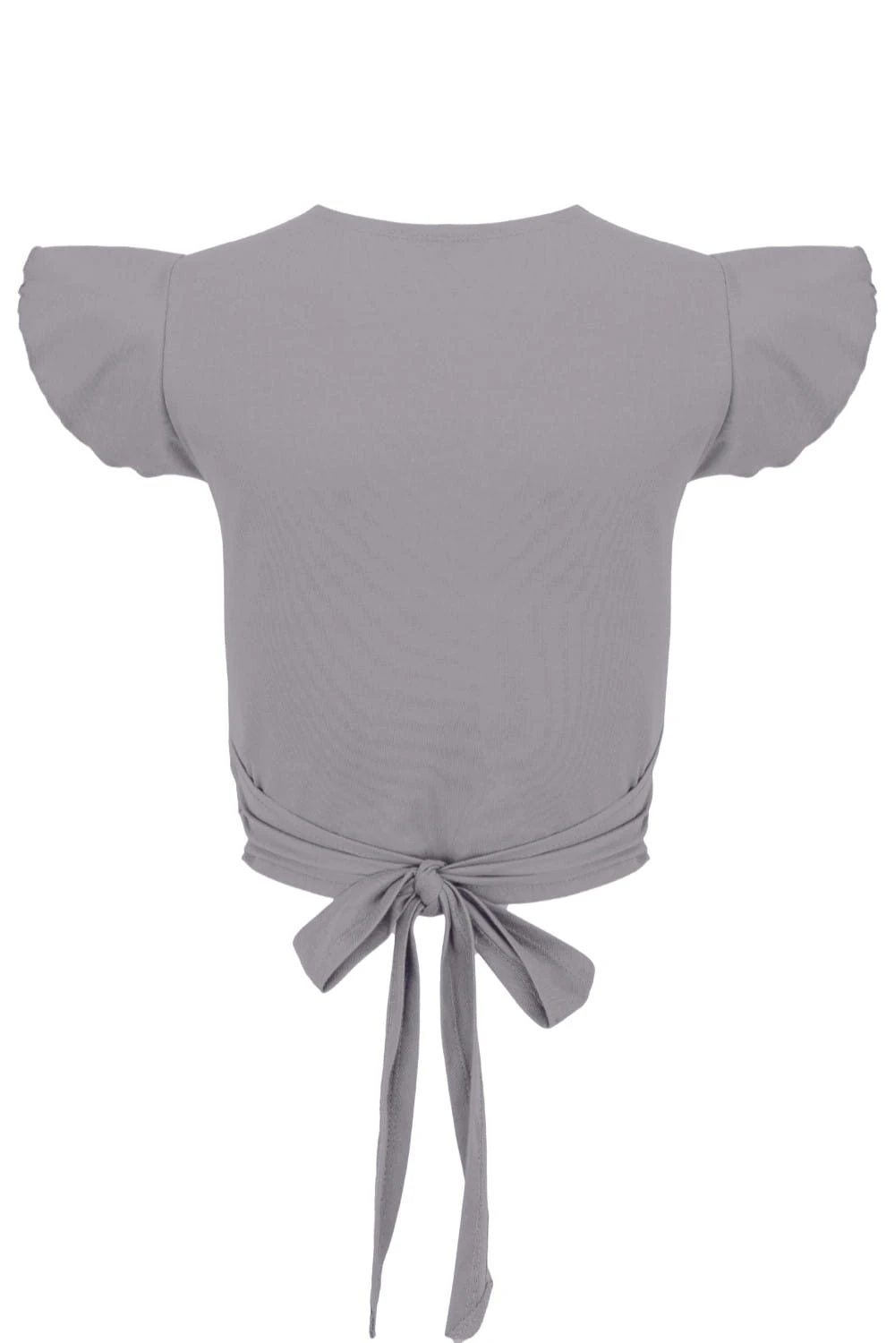 SOPHIÉ - Alloy - bawełniana kopertowa bluzka z wiązaniem i krótkimi zwiewnymi rękawami