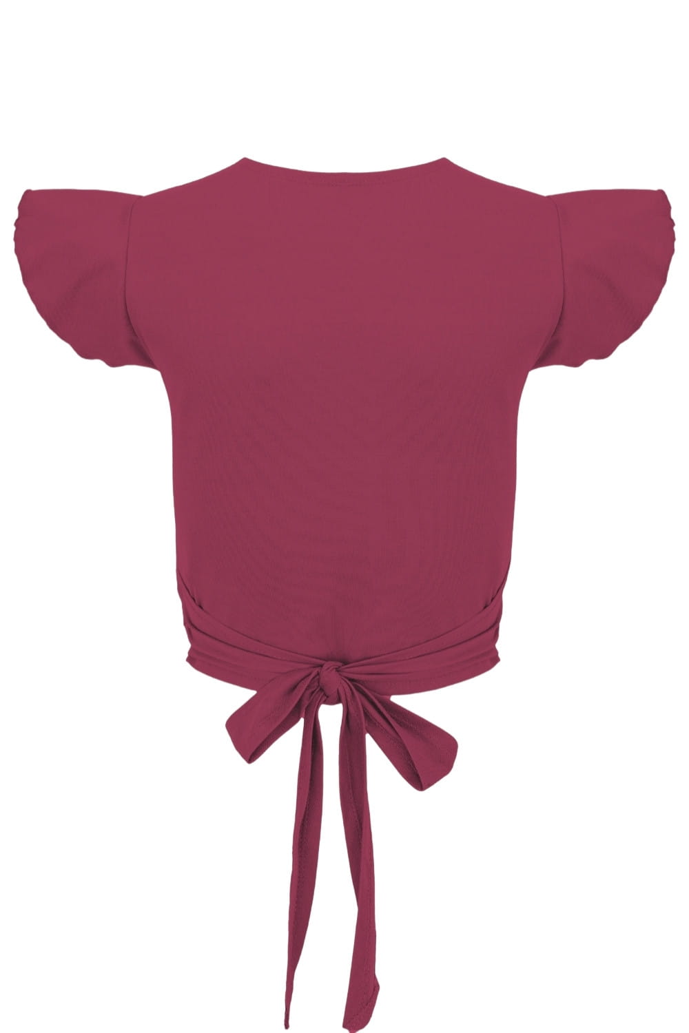 SOPHIÉ - Beaujolais - bawełniana kopertowa bluzka z wiązaniem i krótkimi zwiewnymi rękawami