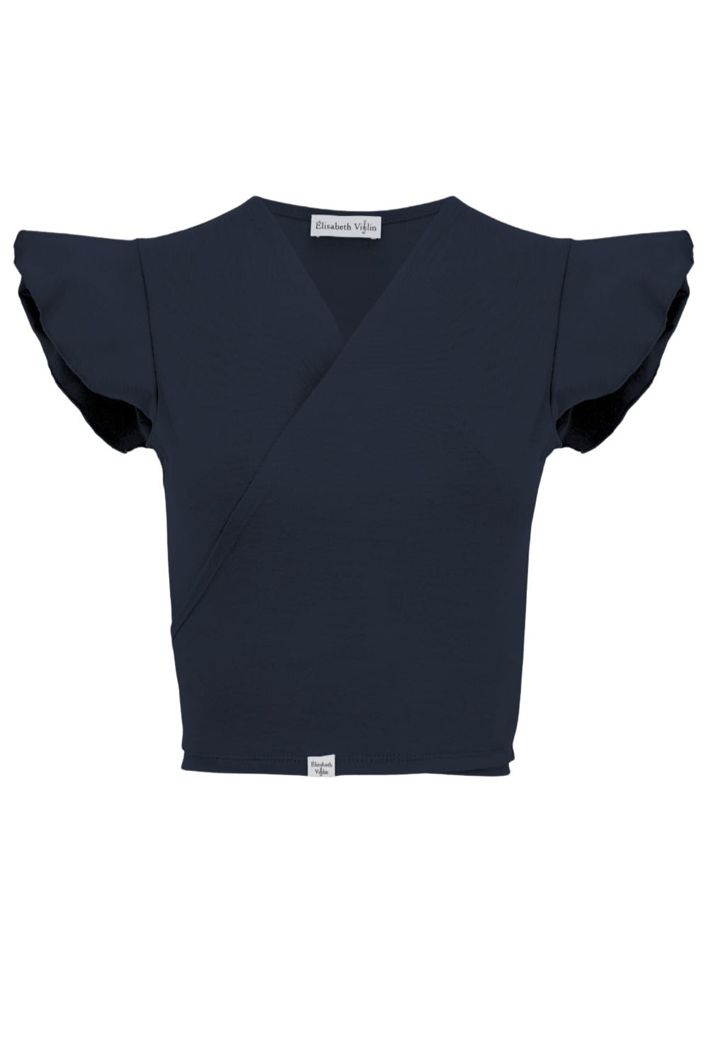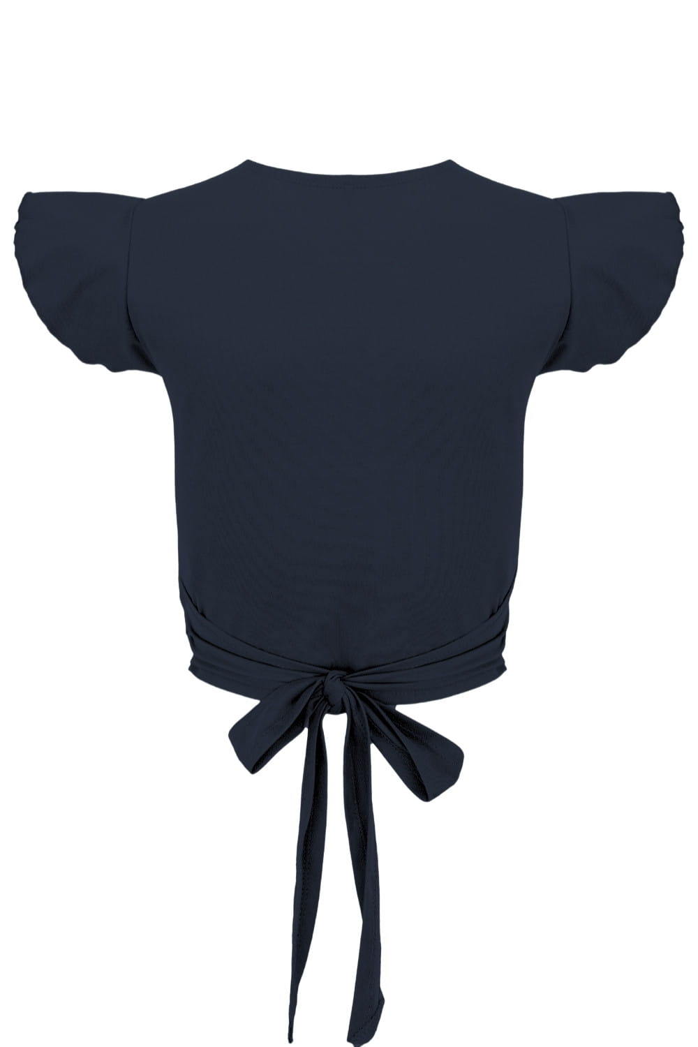 SOPHIÉ - Blueberry - bawełniana kopertowa bluzka z wiązaniem i krótkimi zwiewnymi rękawami