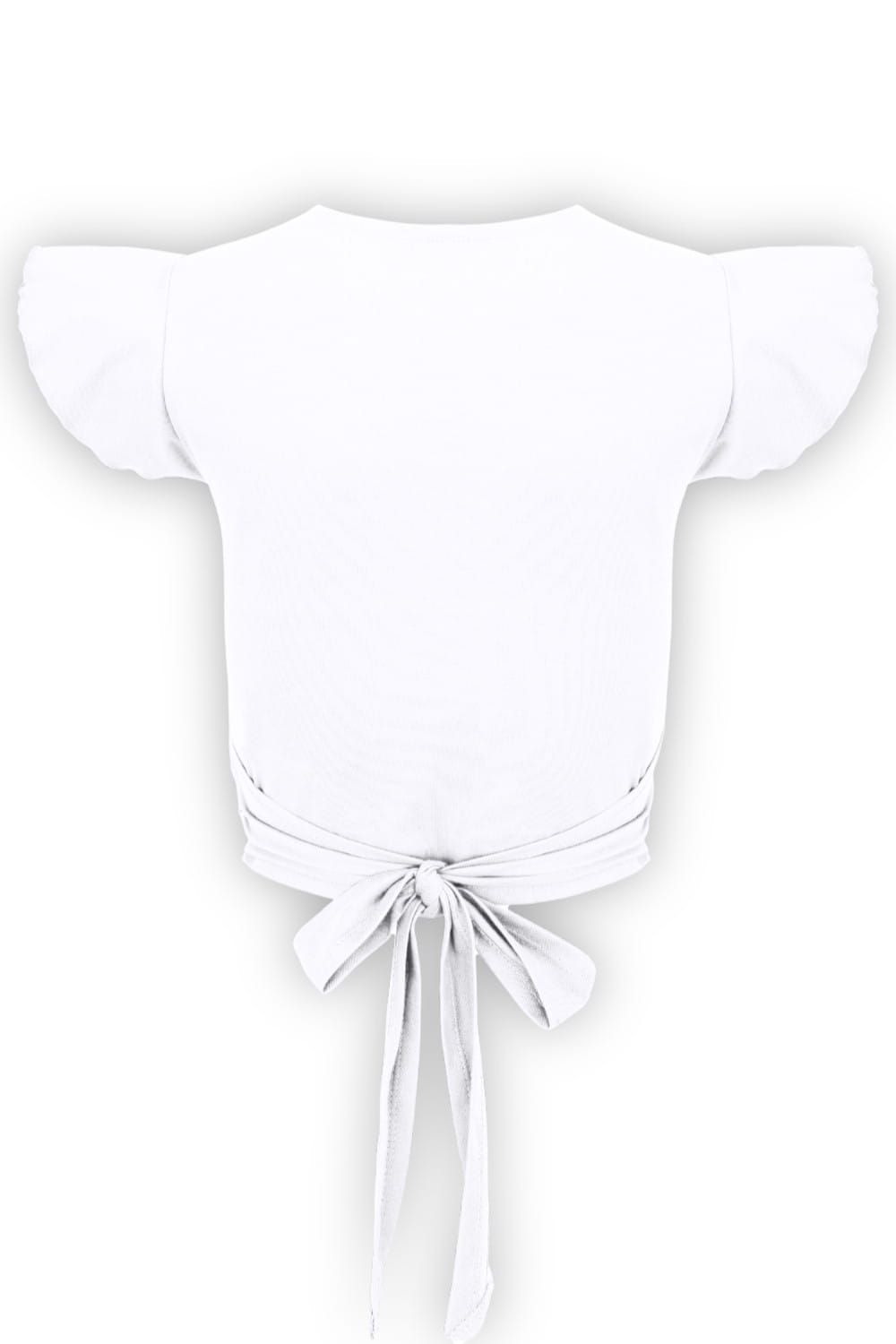 SOPHIÉ - Brilliant White - bambusowa kopertowa bluzka z wiązaniem i krótkimi zwiewnymi rękawami