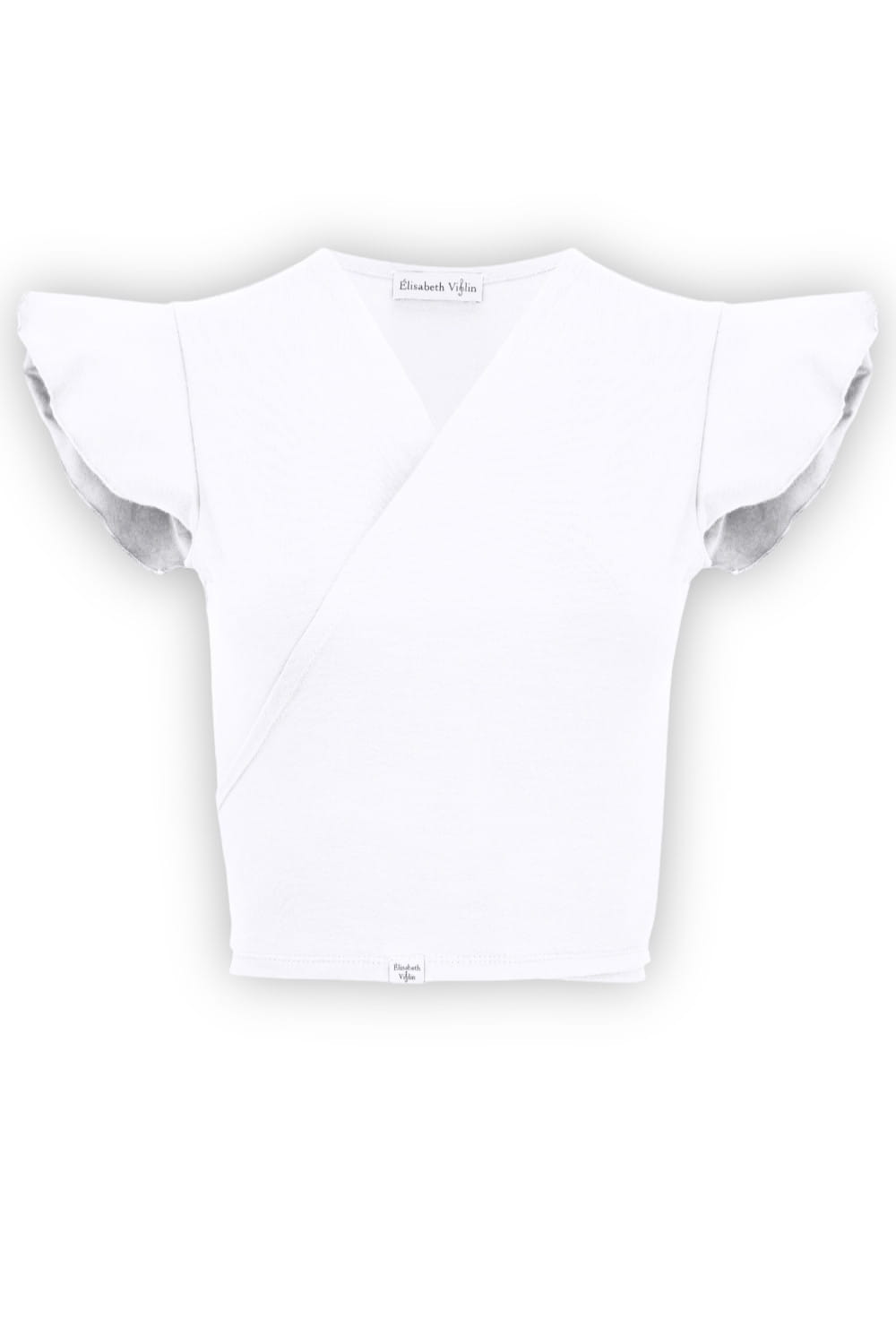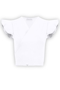 SOPHIÉ - Brilliant White - bawełniana kopertowa bluzka z wiązaniem i krótkimi zwiewnymi rękawami