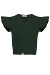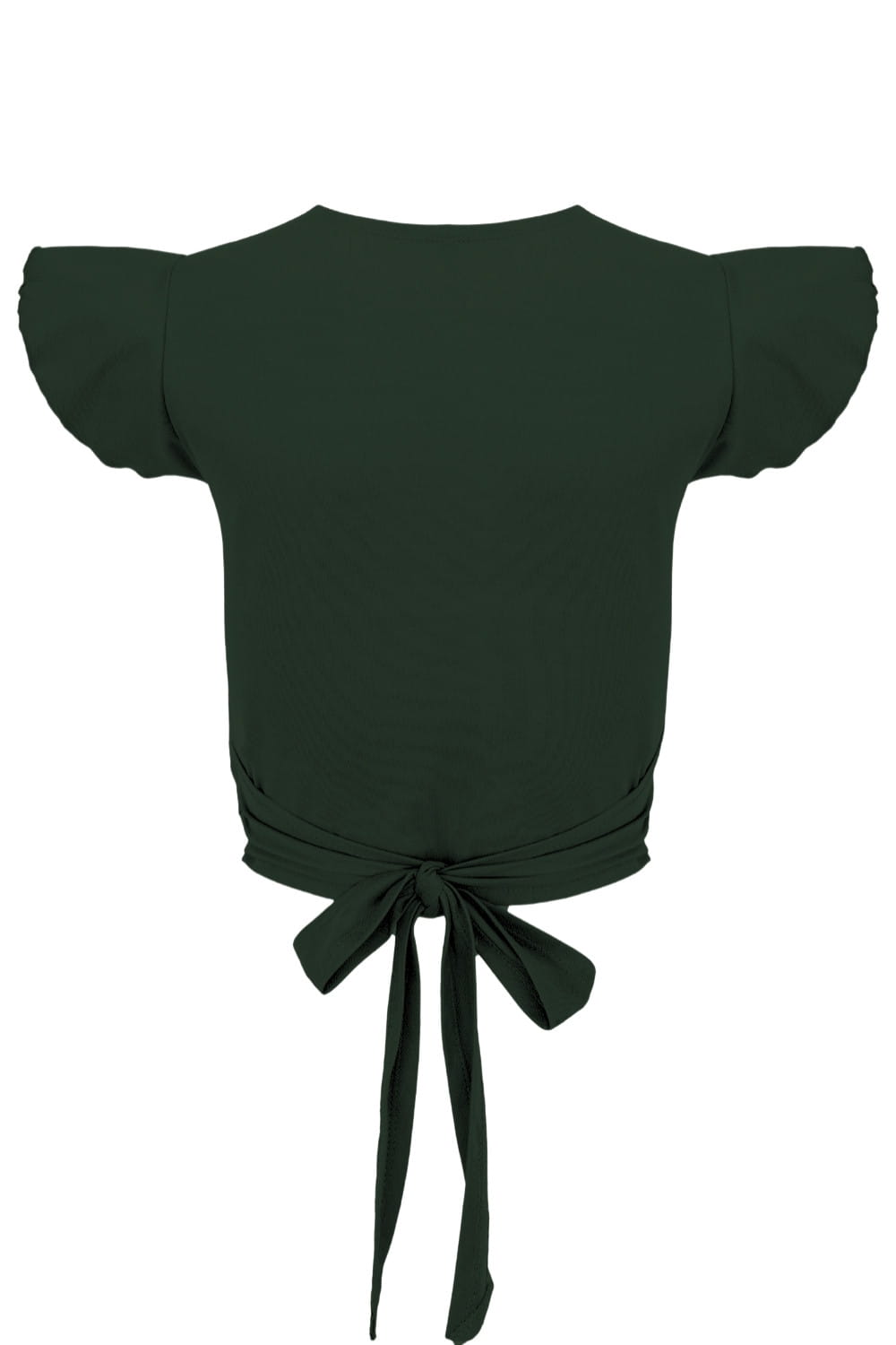 SOPHIÉ - Darkest Spruce - bawełniana kopertowa bluzka z wiązaniem i krótkimi zwiewnymi rękawami