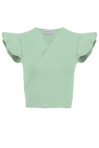 SOPHIÉ - Grayed Jade - bambusowa kopertowa bluzka z wiązaniem i krótkimi zwiewnymi rękawami