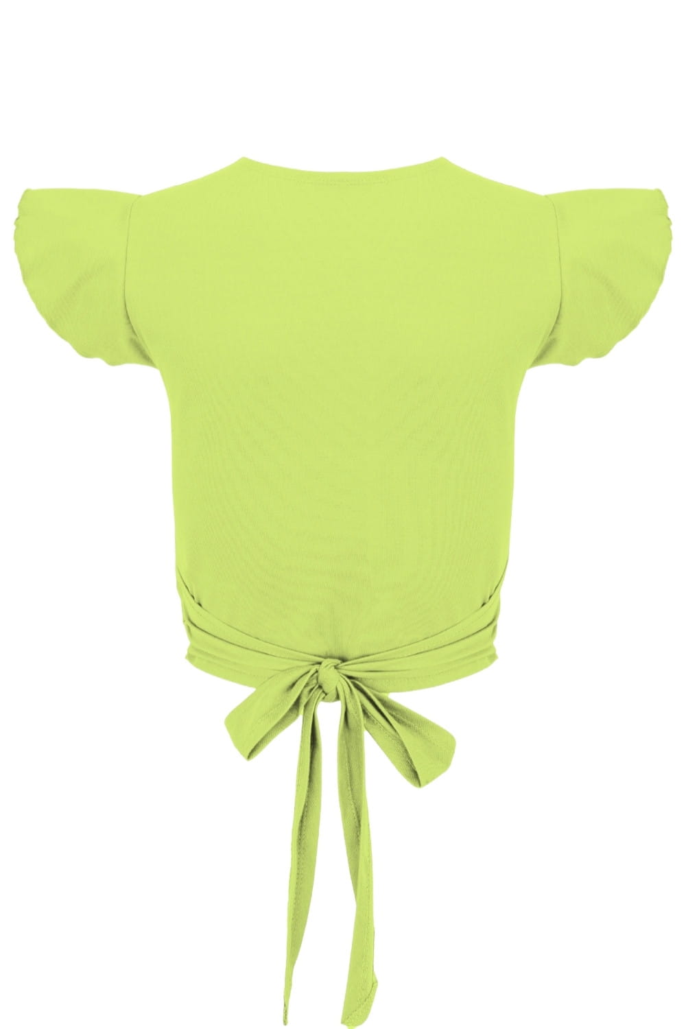 SOPHIÉ - Green Glow - bawełniana kopertowa bluzka z wiązaniem i krótkimi zwiewnymi rękawami