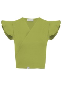 SOPHIÉ - Herbal Garden - bambusowa kopertowa bluzka z wiązaniem i krótkimi zwiewnymi rękawami
