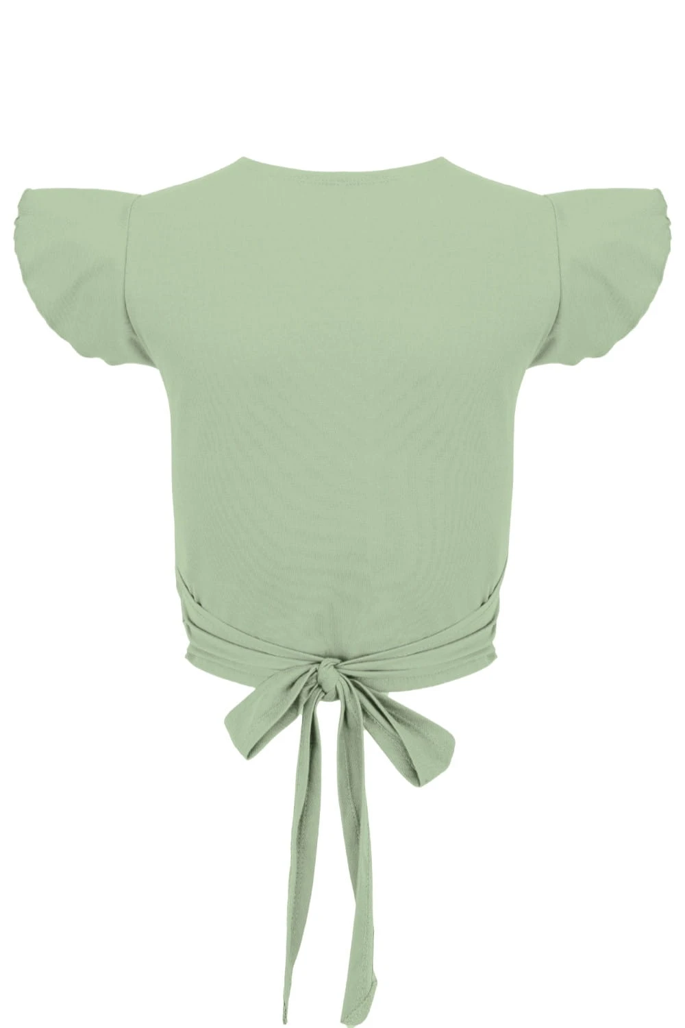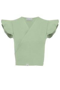 SOPHIÉ - Iceberg Green - wiskozowa kopertowa bluzka z wiązaniem i krótkimi zwiewnymi rękawami