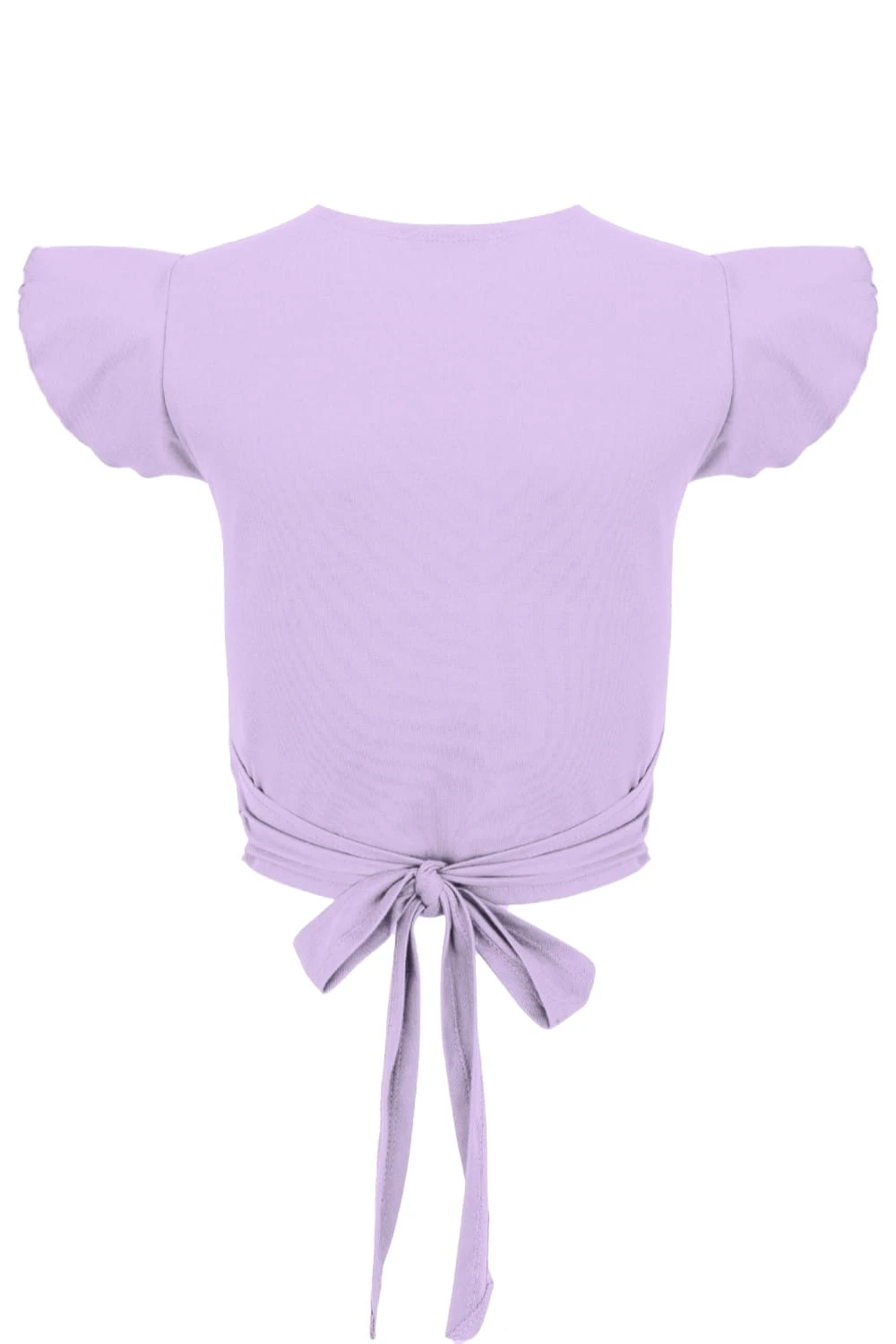 SOPHIÉ - Lavender - bambusowa kopertowa bluzka z wiązaniem i krótkimi zwiewnymi rękawami