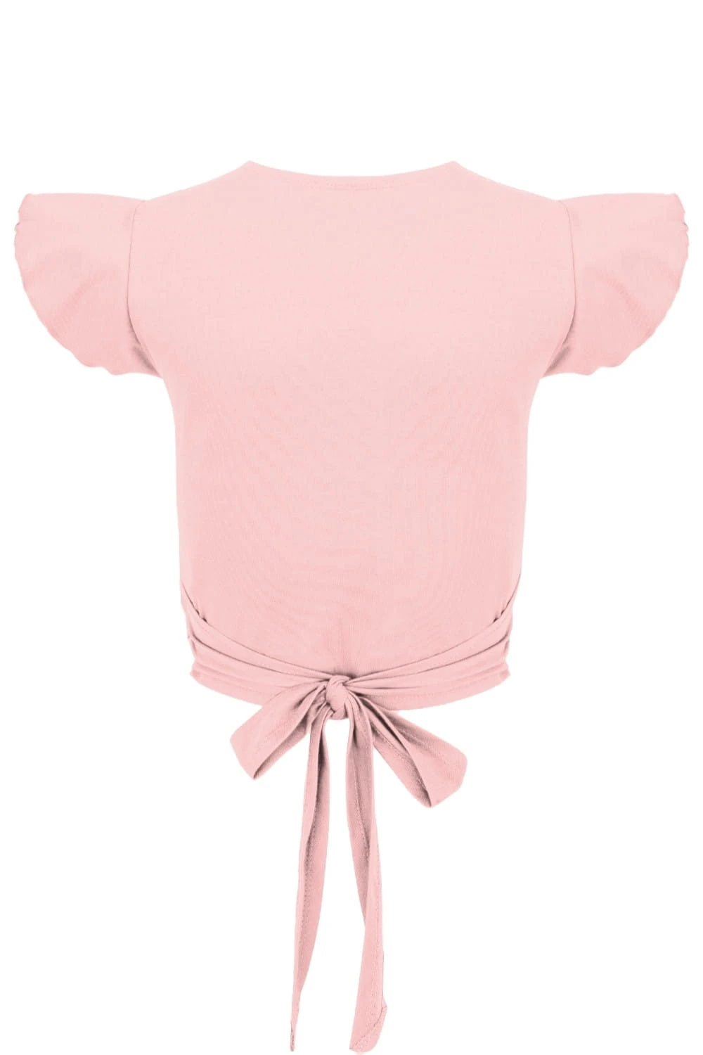 SOPHIÉ - Misty Rose - bambusowa kopertowa bluzka z wiązaniem i krótkimi zwiewnymi rękawami