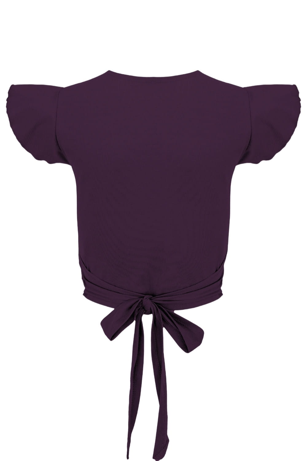 SOPHIÉ - Plum Purple - bambusowa kopertowa bluzka z wiązaniem i krótkimi zwiewnymi rękawami