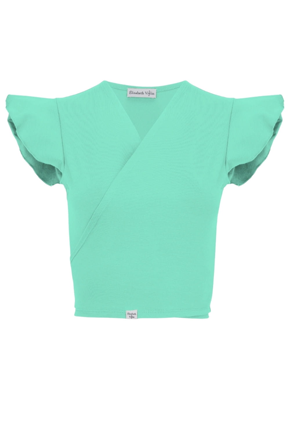 SOPHIÉ - Pool Blue - bawełniana kopertowa bluzka z wiązaniem i krótkimi zwiewnymi rękawami