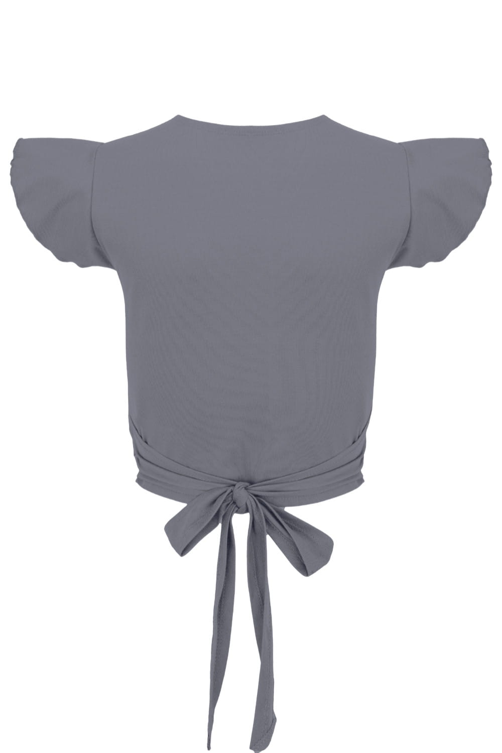 SOPHIÉ - Quiet Shade - bambusowa kopertowa bluzka z wiązaniem i krótkimi zwiewnymi rękawami