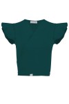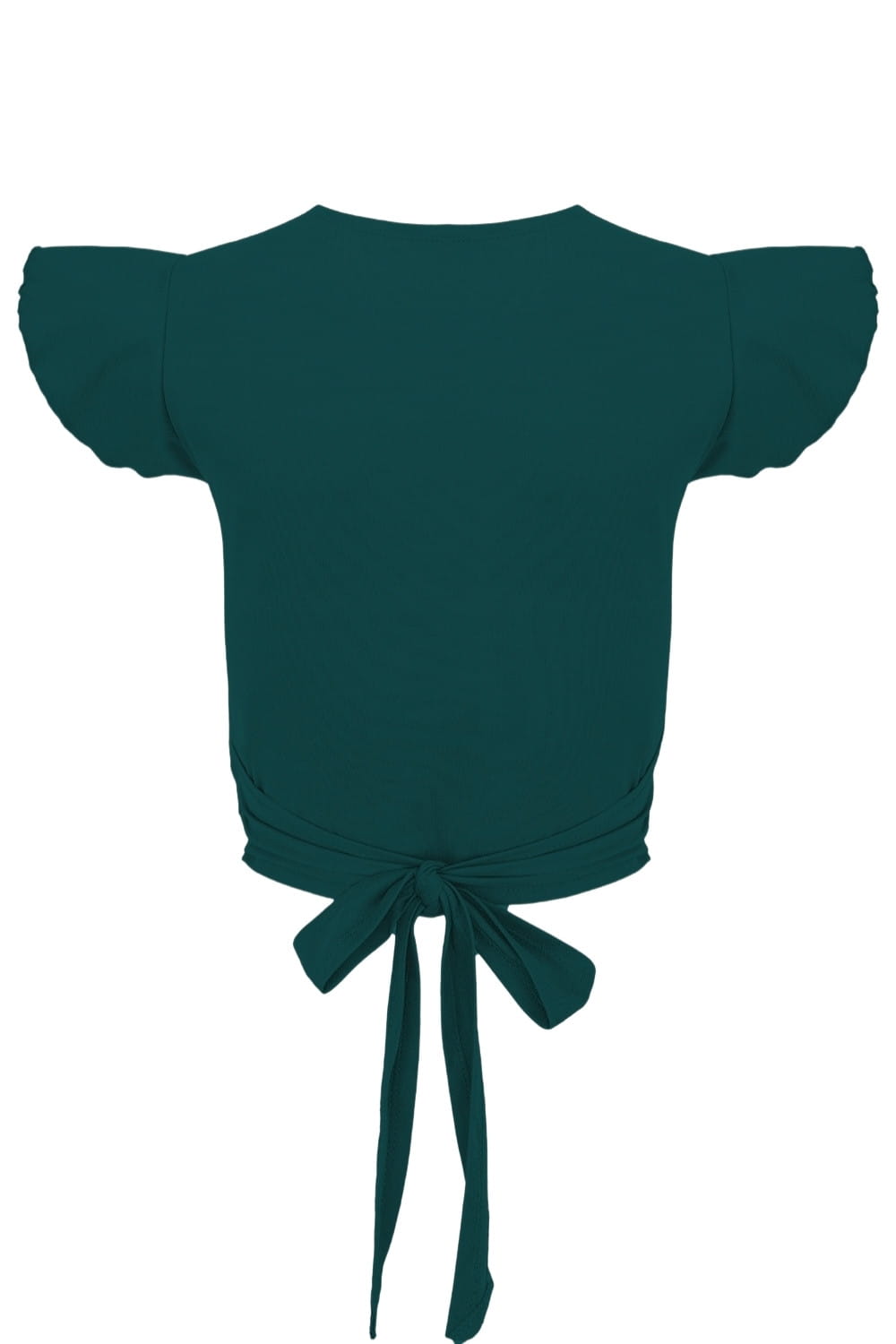 SOPHIÉ - Sea Moss - bambusowa kopertowa bluzka z wiązaniem i krótkimi zwiewnymi rękawami