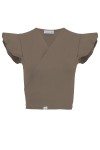 SOPHIÉ - Timber Wolf - wiskozowa kopertowa bluzka z wiązaniem i krótkimi zwiewnymi rękawami