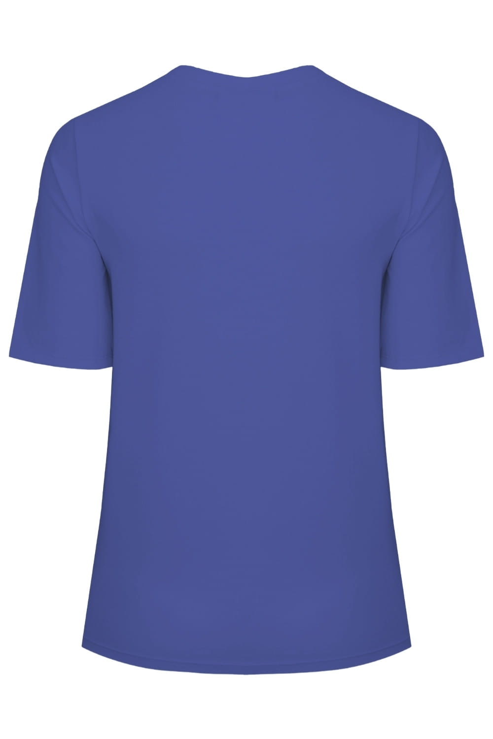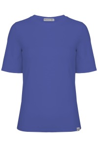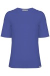THEA - Amparo Blue - wiskozowy damski T-shirt z okrągłym dekoltem i klasycznymi rękawami