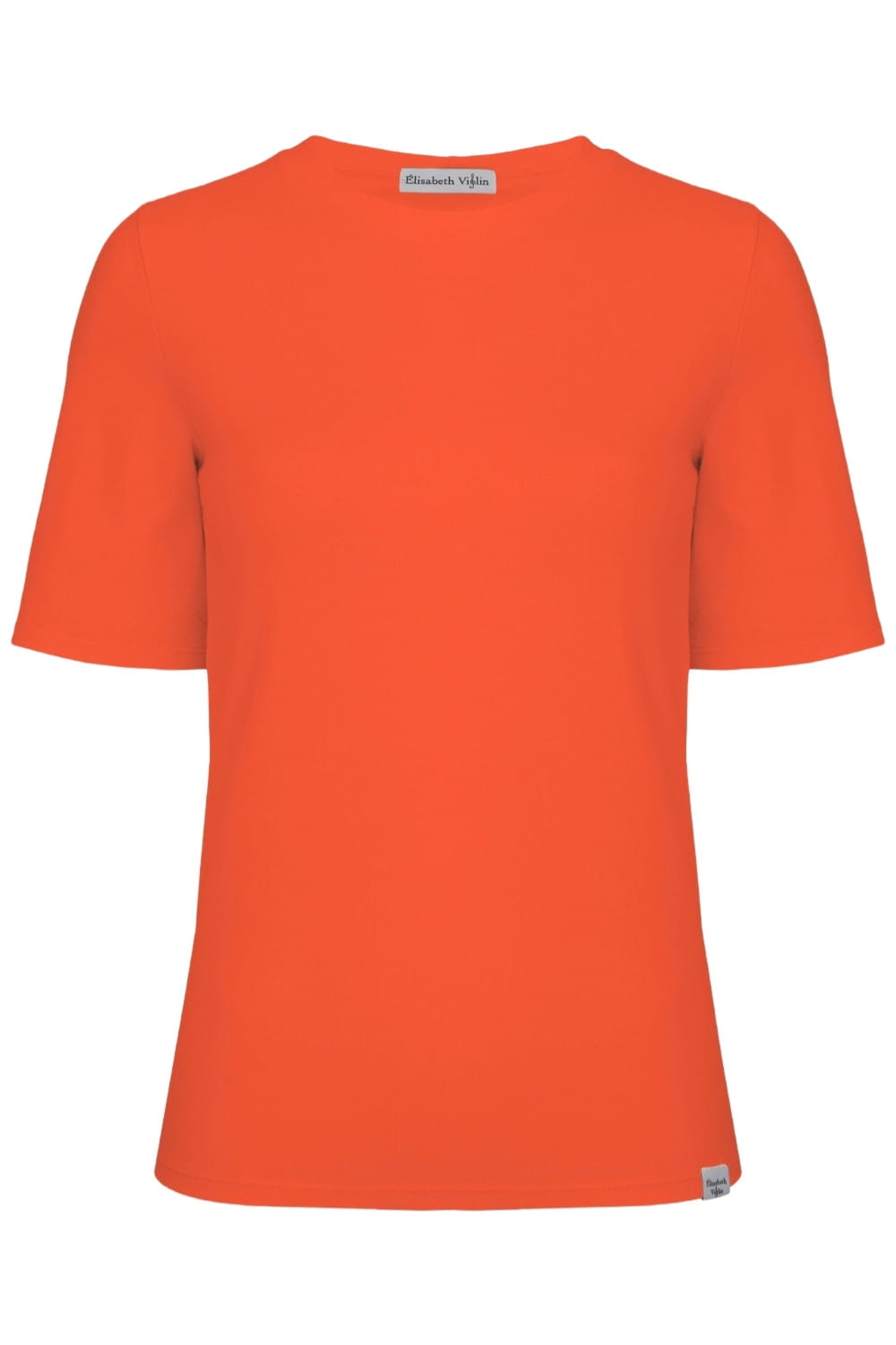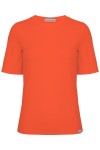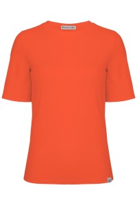 THEA - Flame Scarlet - wiskozowy damski T-shirt z okrągłym dekoltem i klasycznymi rękawami