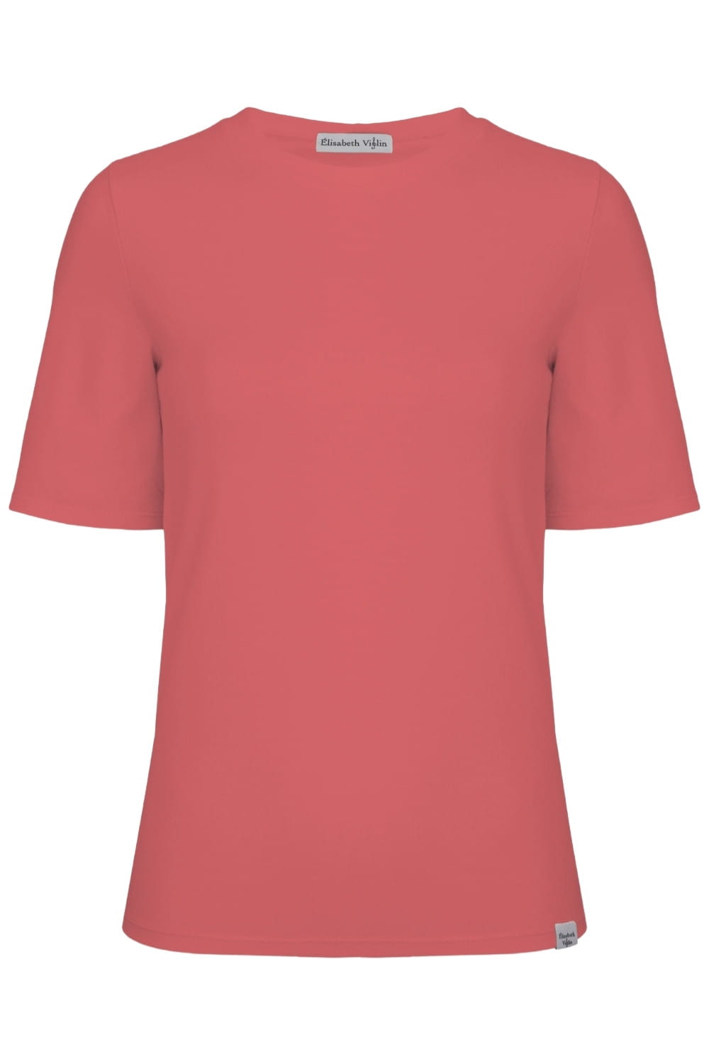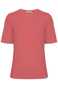 THEA - Garnet Rose - wiskozowy damski T-shirt z okrągłym dekoltem i klasycznymi rękawami