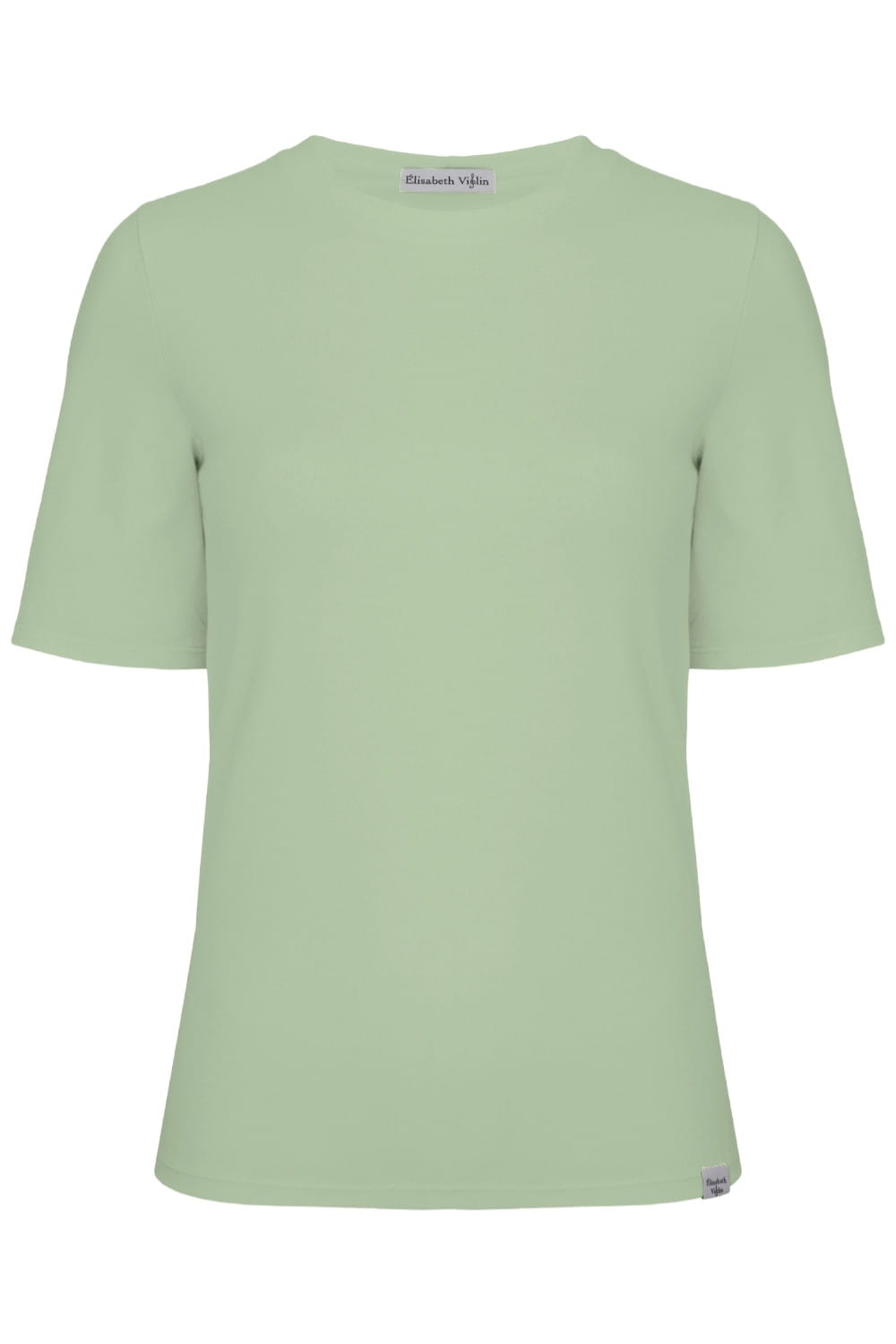 THEA - Iceberg Green - wiskozowy damski T-shirt z okrągłym dekoltem i klasycznymi rękawami