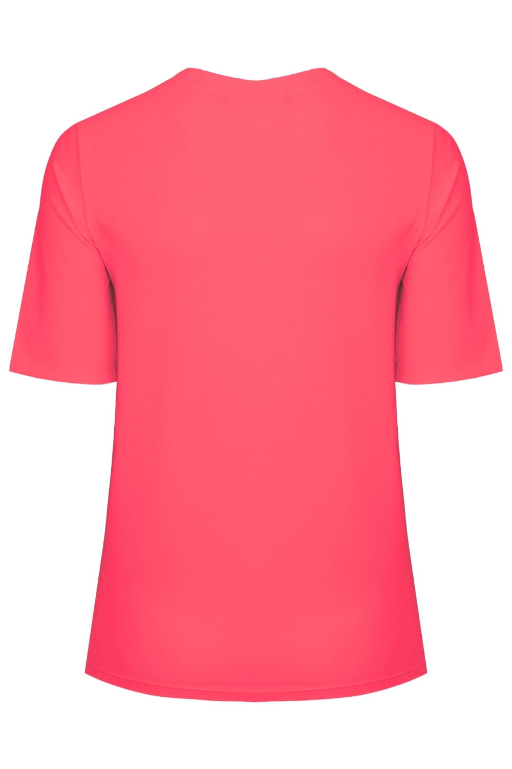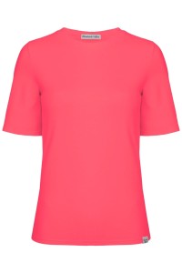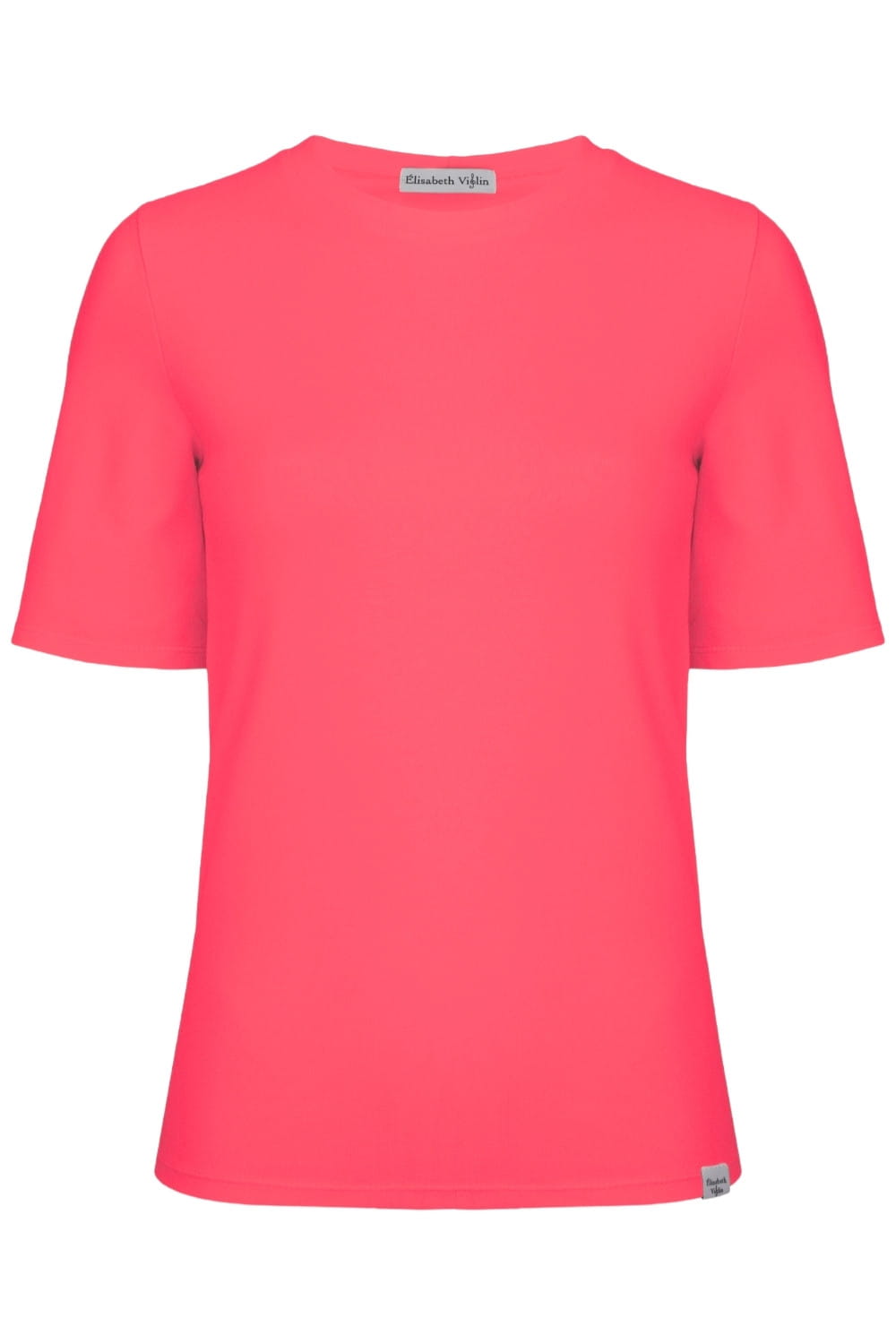 THEA - Rouge Red - wiskozowy damski T-shirt z okrągłym dekoltem i klasycznymi rękawami