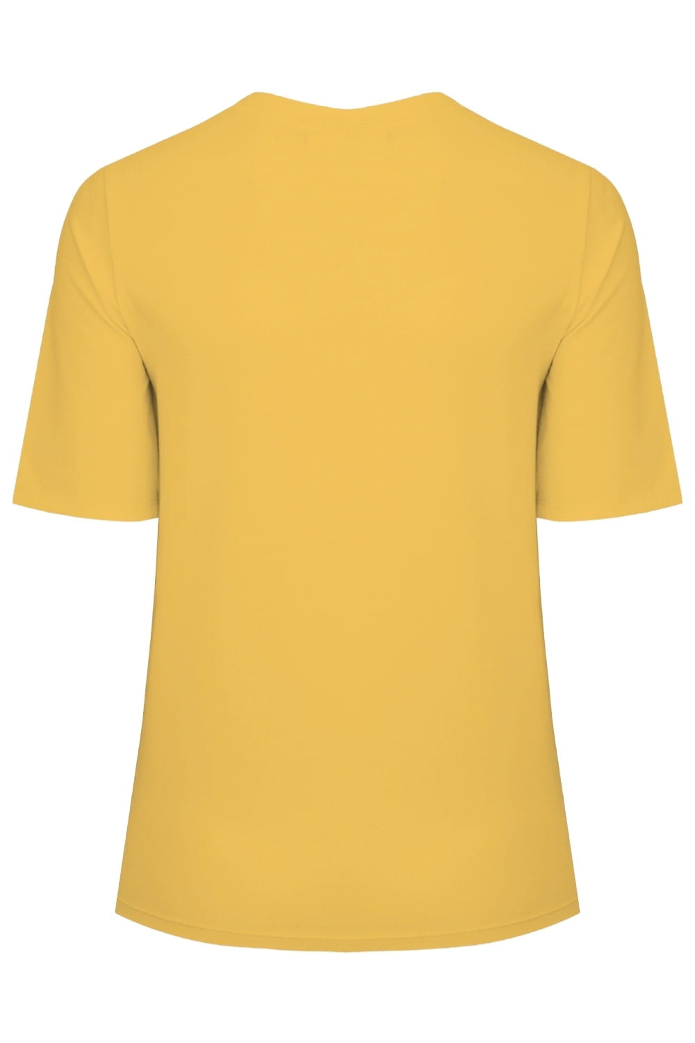 Klasyczny fason z okrągłym dekoltem i krótkim rękawem sprawia, że THEA odnajduje się w każdej sytuacji – od biura po spacer w słońcu. Nie narzuca się, a jednak robi różnicę.