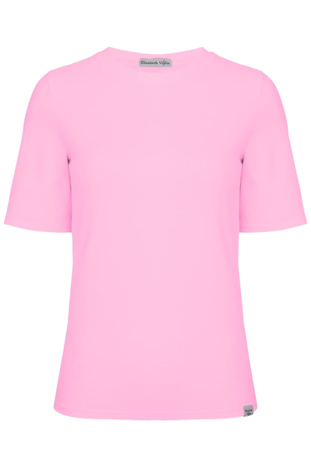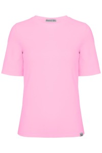 THEA - Sea Pink - wiskozowy damski T-shirt z okrągłym dekoltem i klasycznymi rękawami