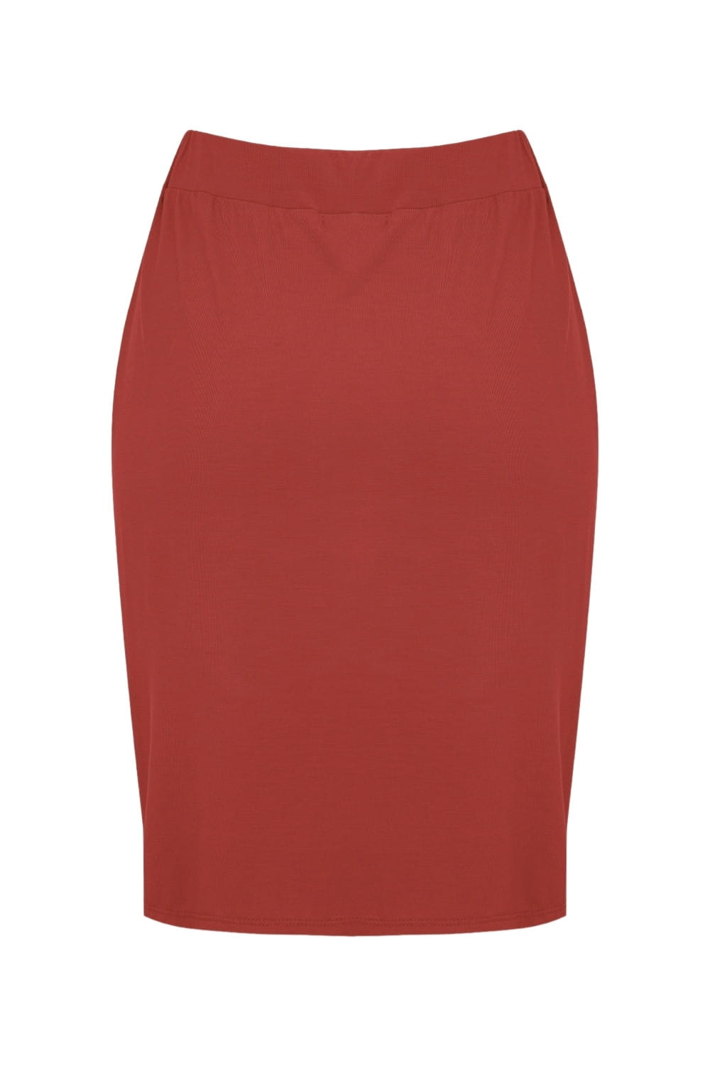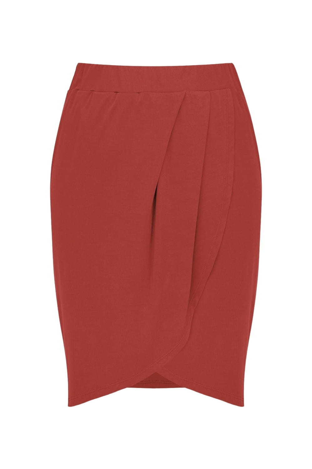 TULIA - Brick Red - bawełniana spódnica typu tulipan przed kolano z elastyczną gumką w pasie