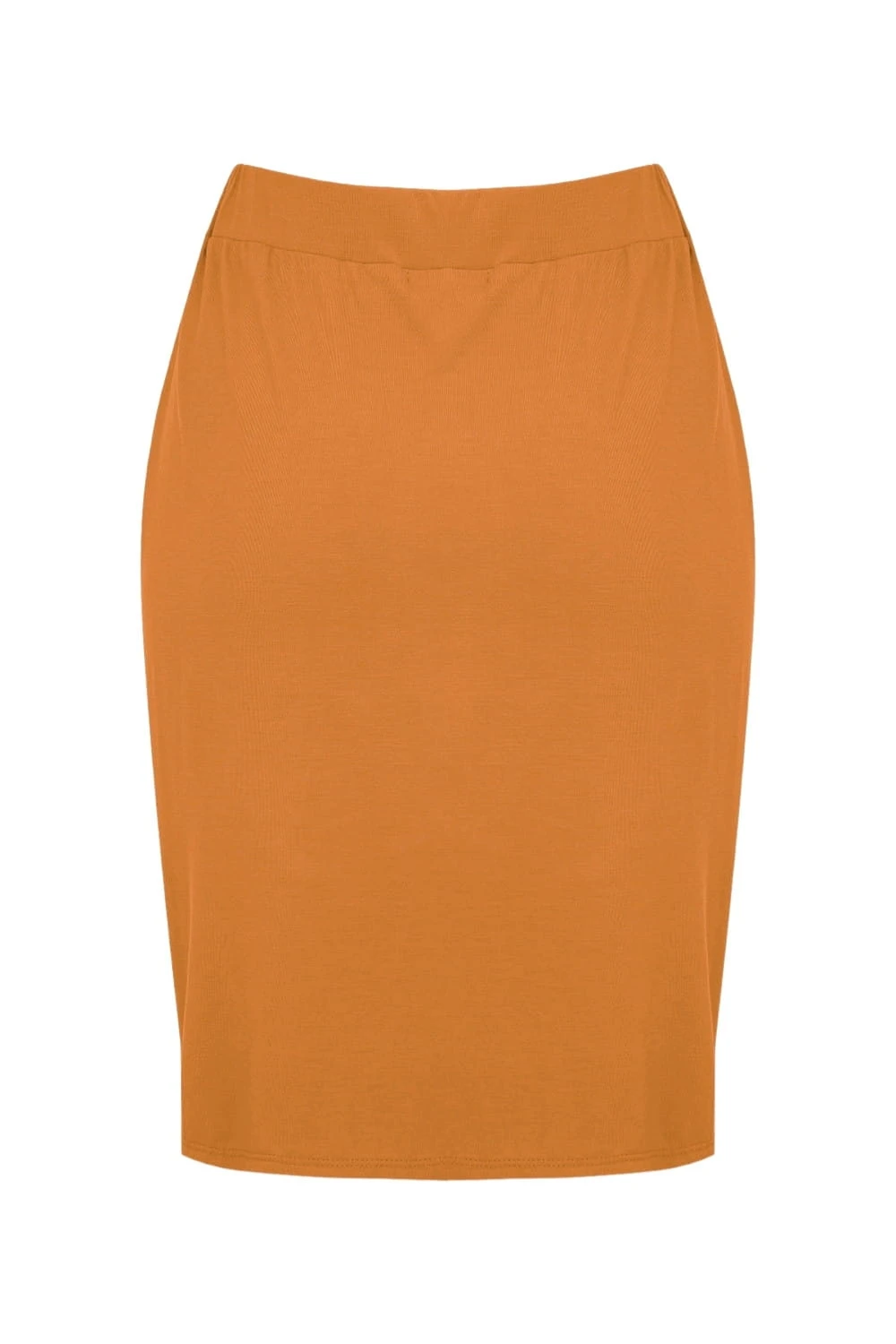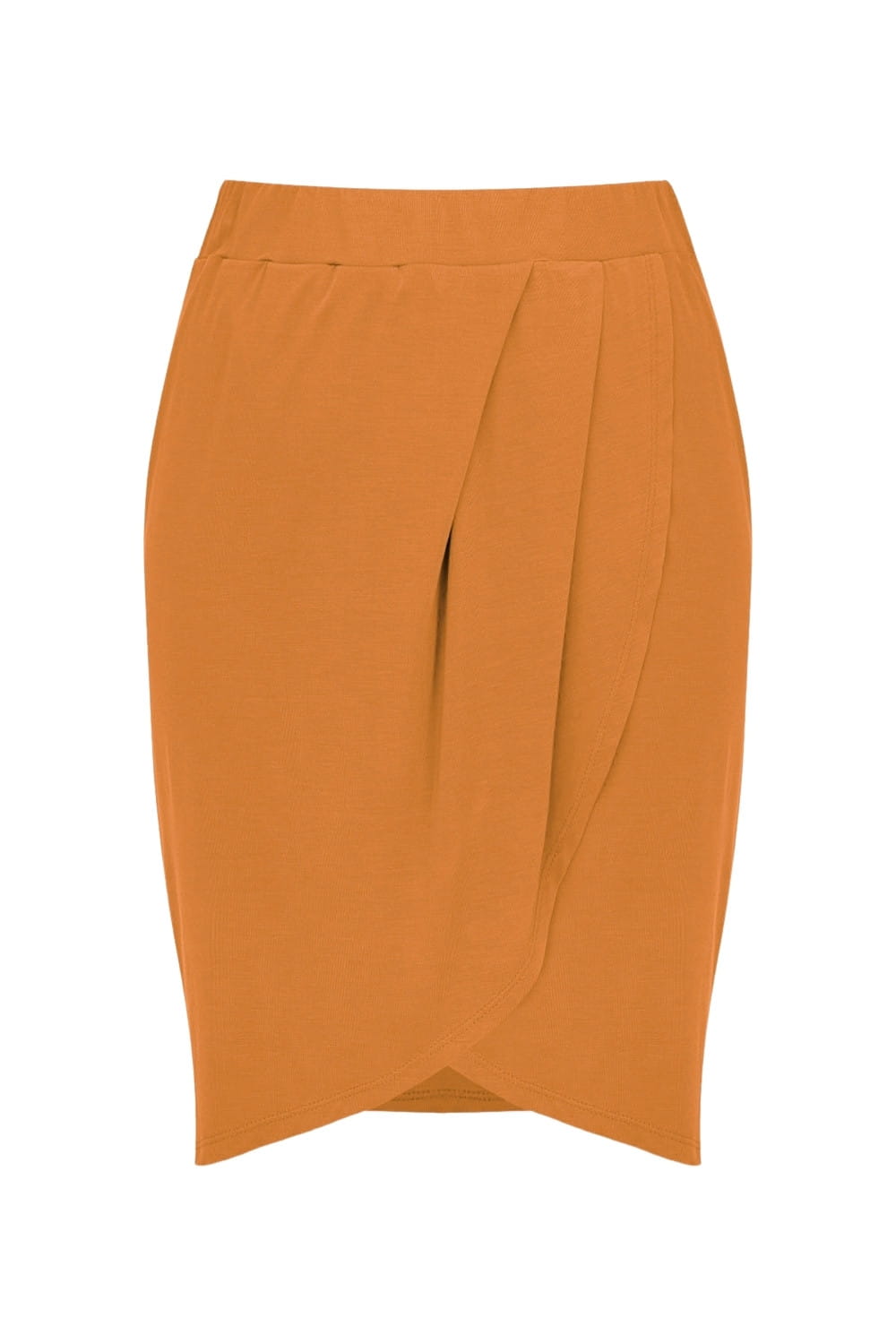 TULIA - Golden Ochre - bambusowa spódnica typu tulipan przed kolano z elastyczną gumką w pasie