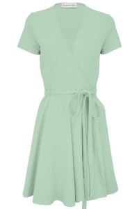 VANESSA - Grayed Jade - bambusowa dzianinowa sukienka z kopertowym dekoltem i dołem z pełnego koła