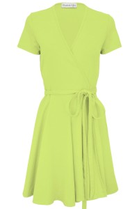 VANESSA - Green Glow - bawełniana dzianinowa sukienka z kopertowym dekoltem i dołem z pełnego koła