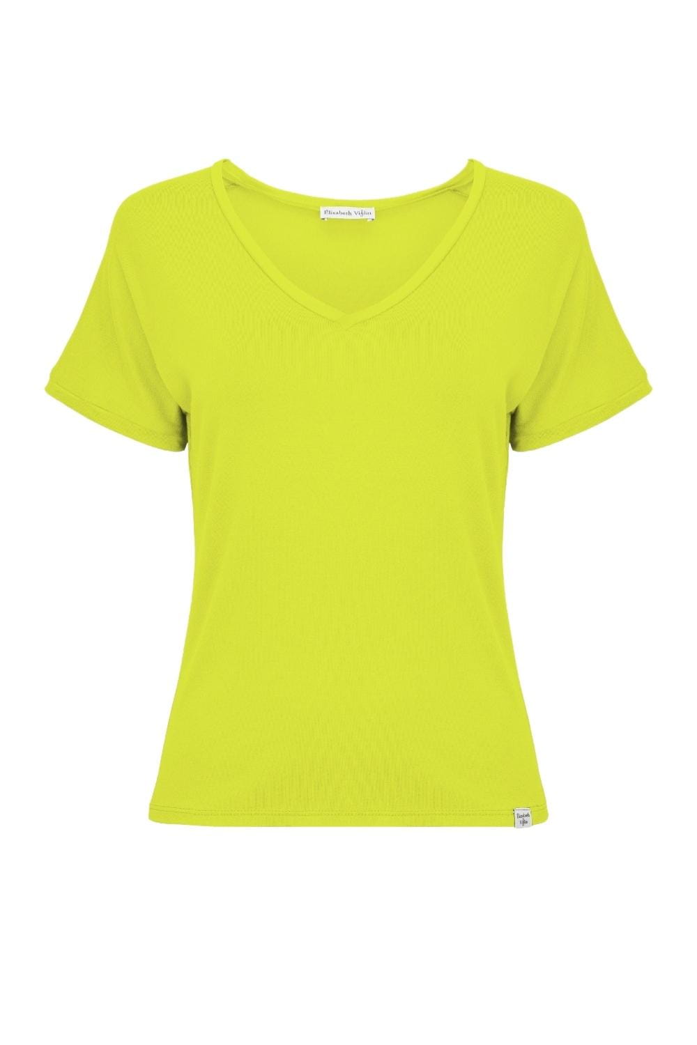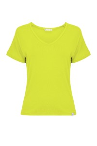 VAYA – Bright Chartreuse - WISKOZA – taliowana bluzka z dekoltem w serek i krótkimi rękawami kimono