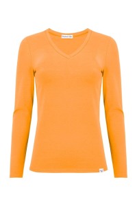 VERA – Blazing Orange - BAMBUS – taliowana bluzka z dekoltem "V" i klasycznymi długimi rękawami