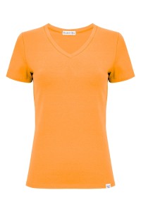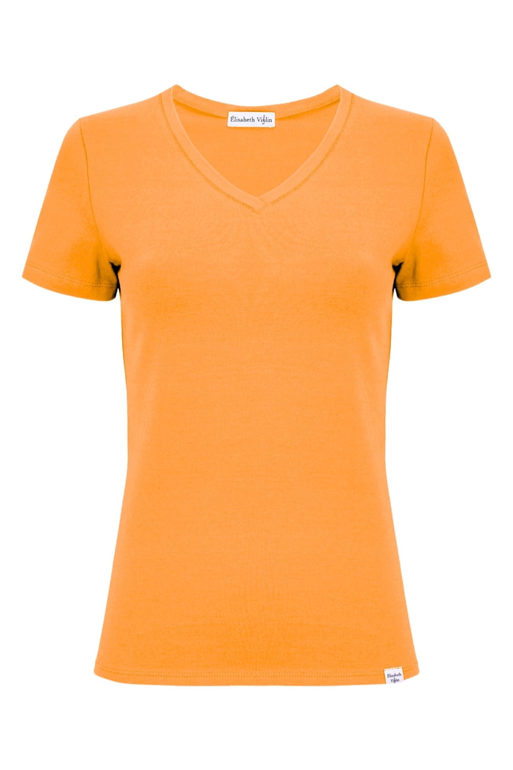 VERA – Blazing Orange - BAMBUS – taliowana bluzka z dekoltem "V" i klasycznymi krótkimi rękawami