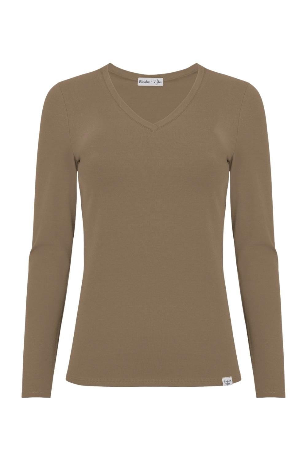 VERA – Brindle - BAWEŁNA GŁADKA – taliowana bluzka z dekoltem "V" i klasycznymi długimi rękawami