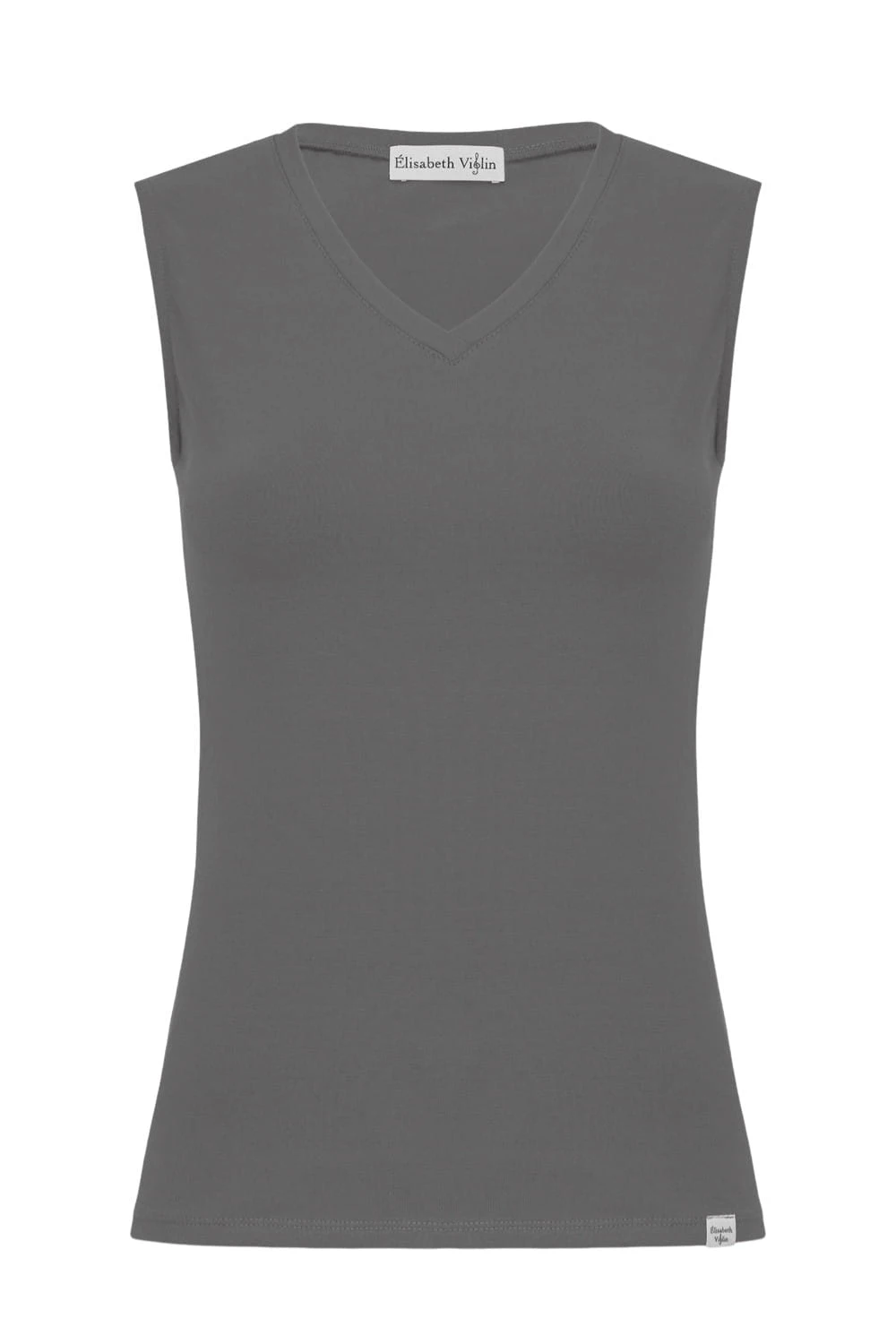 VERA – Charcoal Gray - WISKOZA – taliowana bluzka z dekoltem "V" bez rękawków
