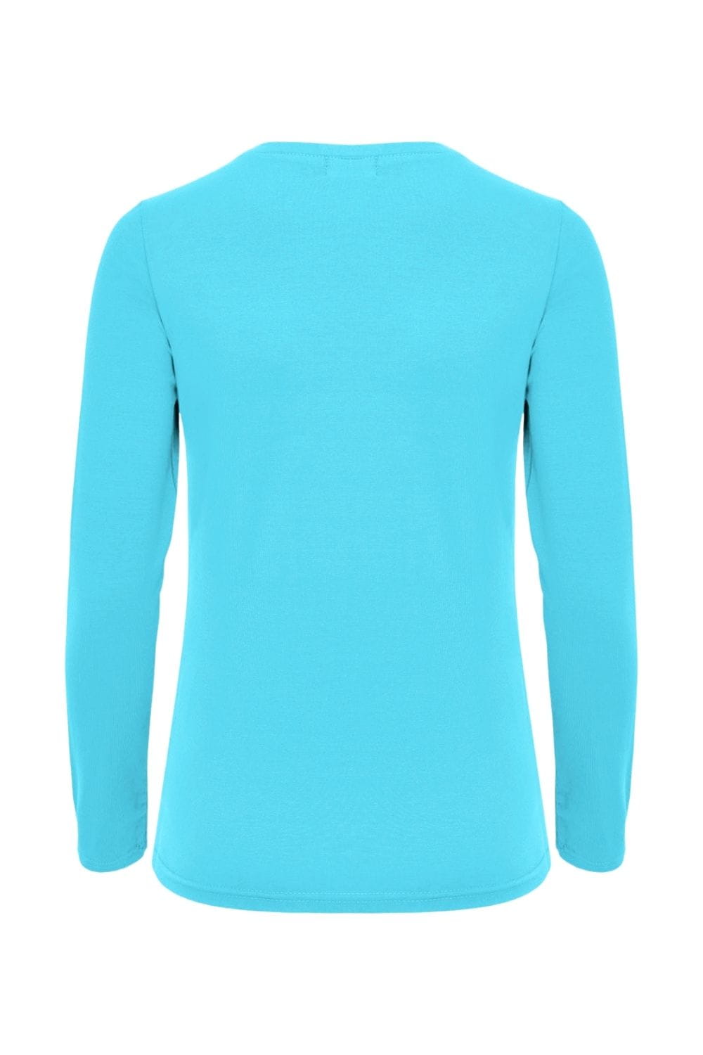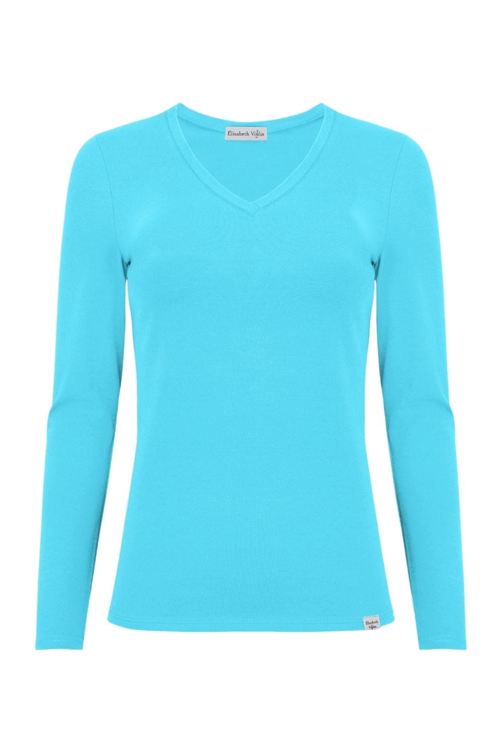 VERA – Cyan Blue - WISKOZA – taliowana bluzka z dekoltem "V" i klasycznymi długimi rękawami