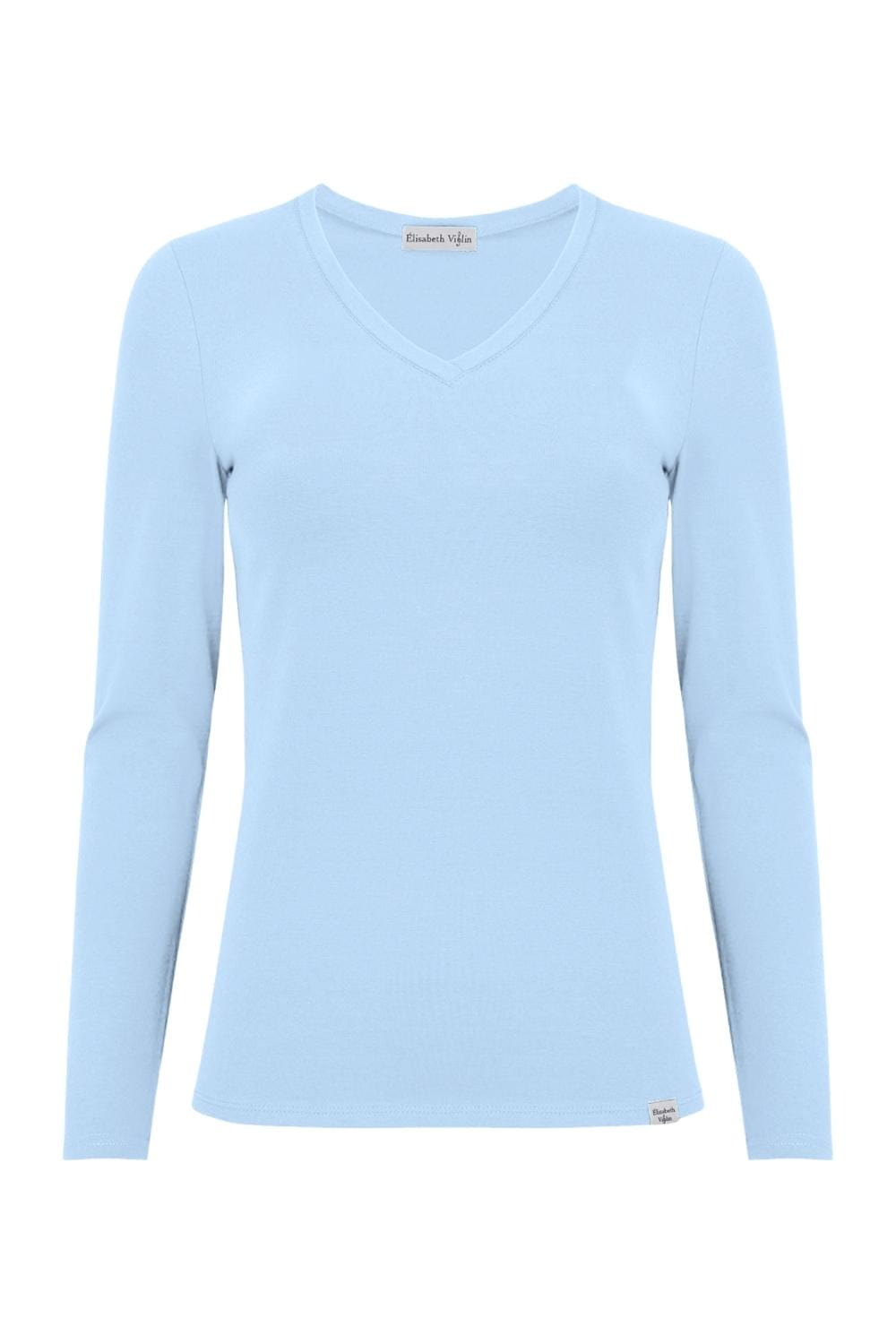 VERA – Dusk Blue - WISKOZA – taliowana bluzka z dekoltem "V" i klasycznymi długimi rękawami