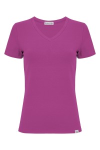 VERA – Festival Fuchsia - WISKOZA – taliowana bluzka z dekoltem "V" i klasycznymi krótkimi rękawami