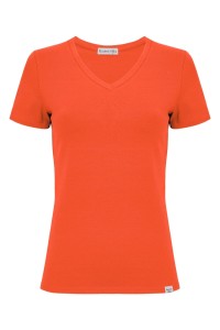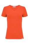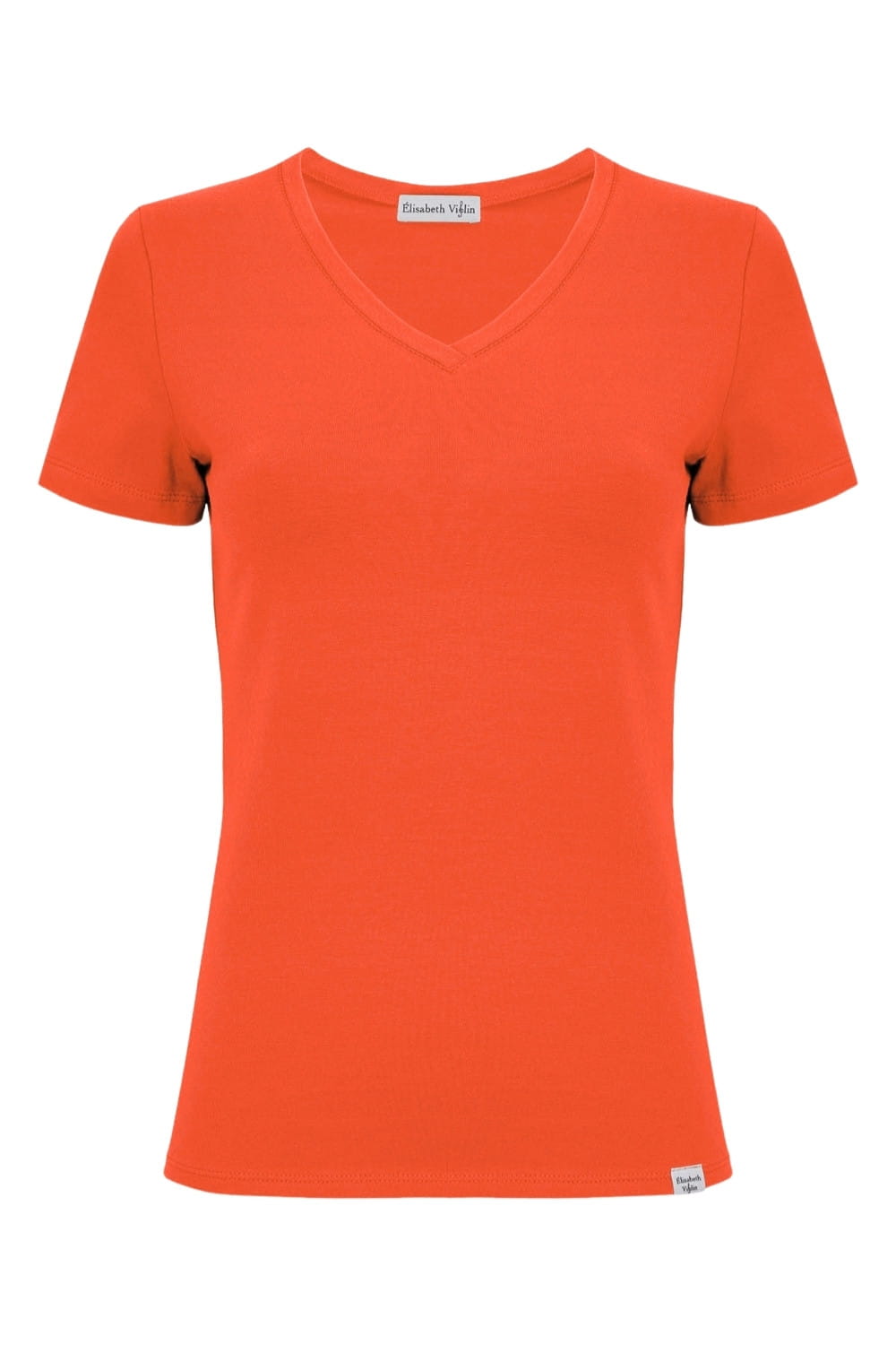 VERA – Flame Scarlet - WISKOZA – taliowana bluzka z dekoltem "V" i klasycznymi krótkimi rękawami