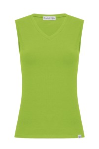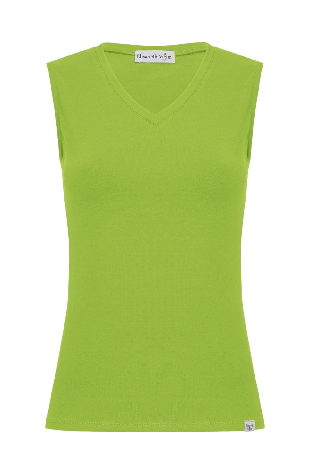 VERA – Greenery - BAWEŁNA GŁADKA – taliowana bluzka z dekoltem "V" bez rękawków